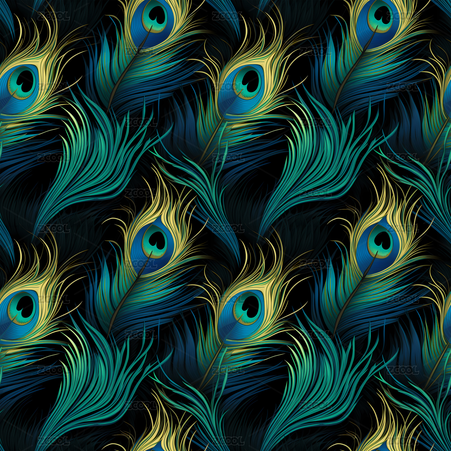孔雀羽毛无缝平铺四方连续纹样图案背景