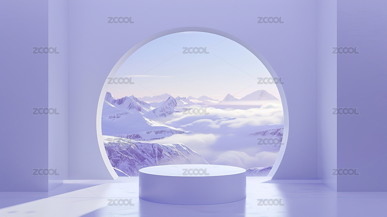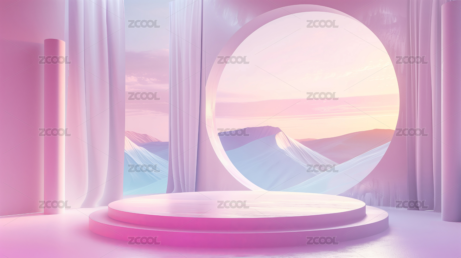 紫色风景圆形产品展台三维图形
