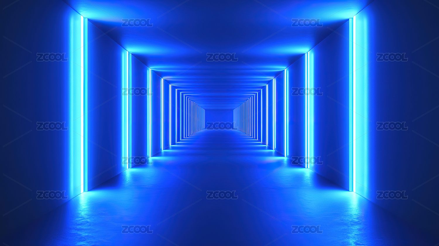 蓝色霓虹灯隧道的未来感场景