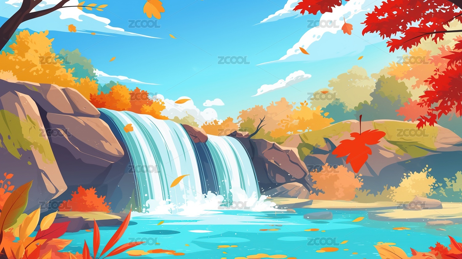秋天秋季户外自然风光风景卡通漫画插画