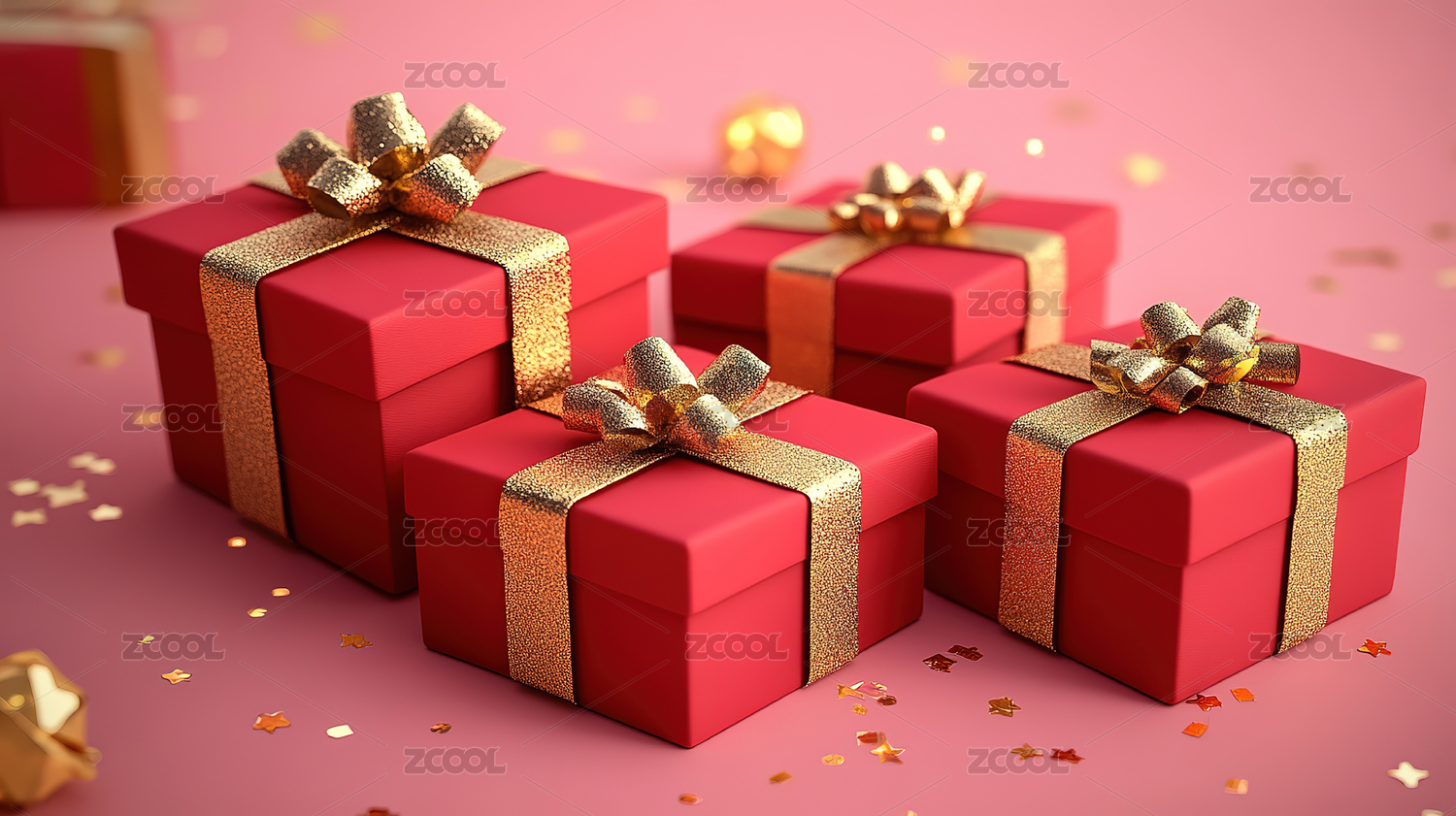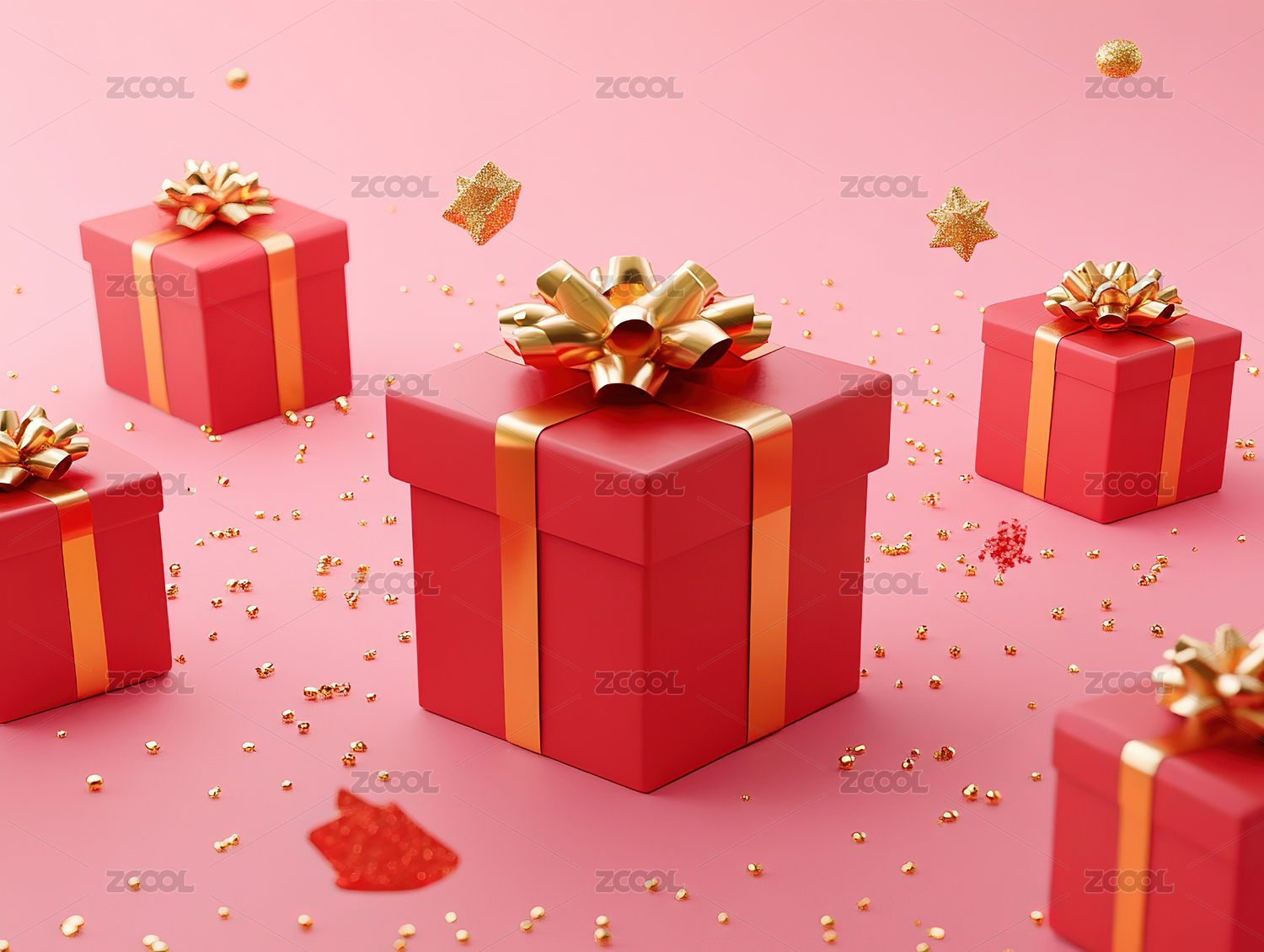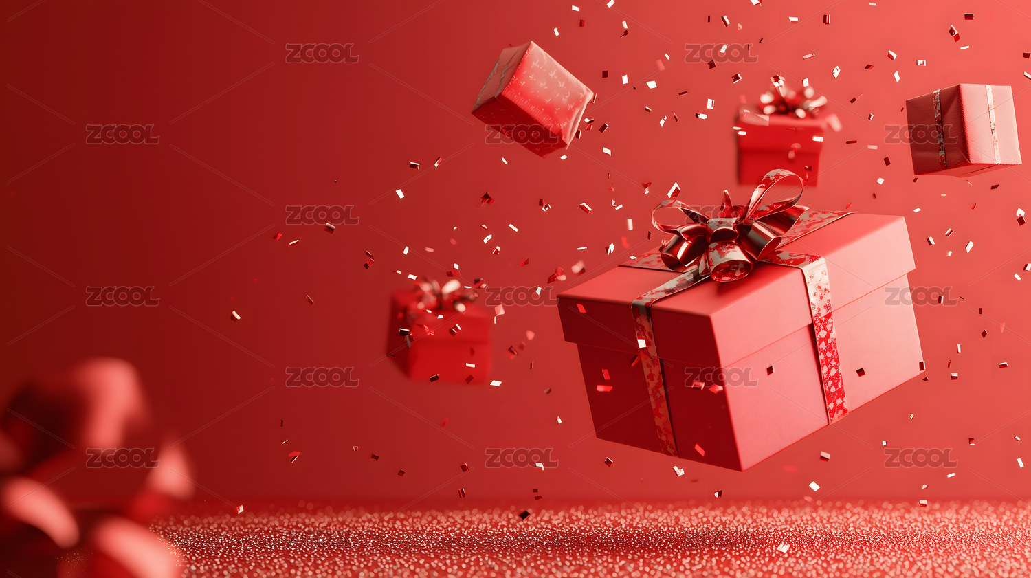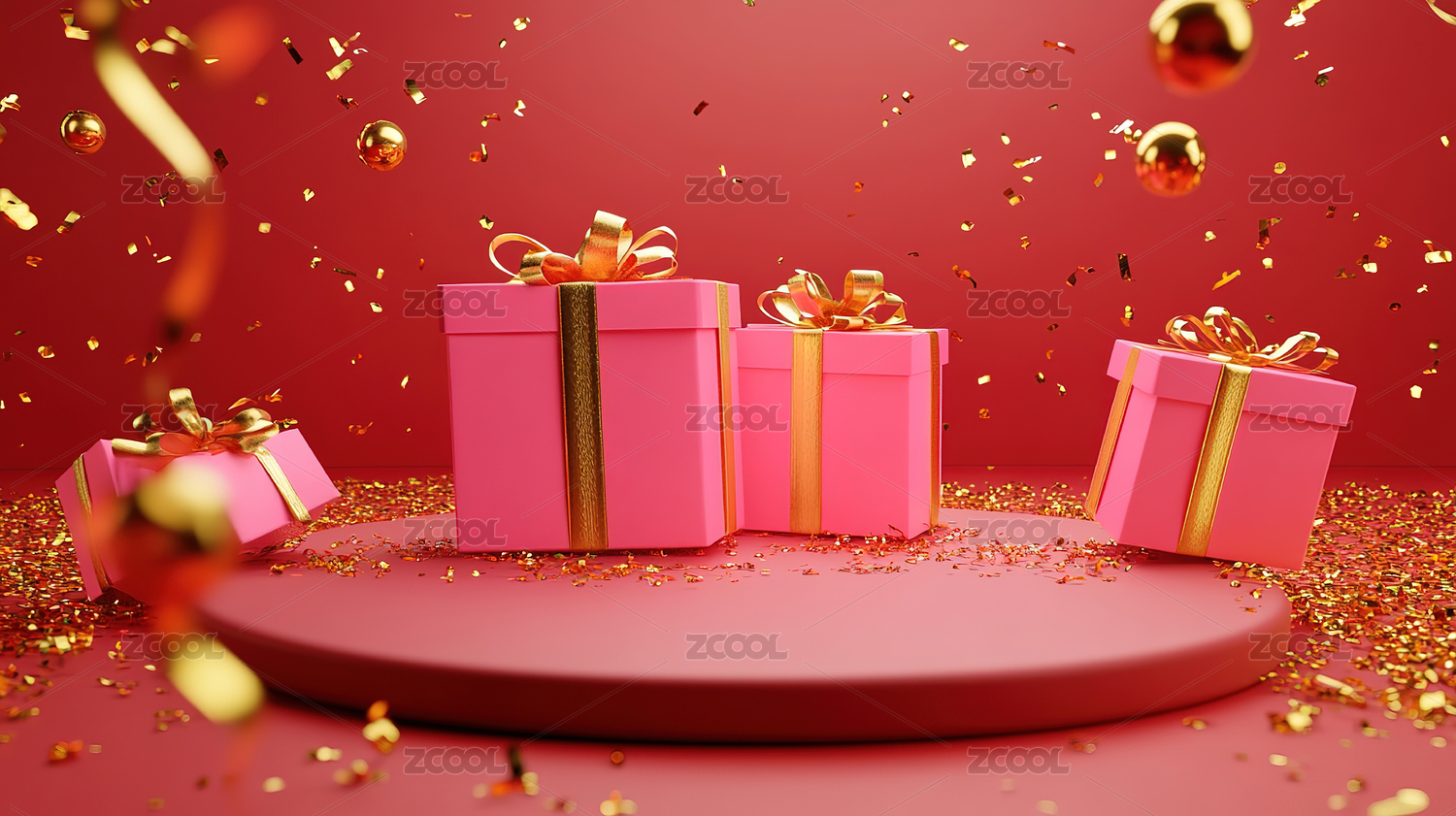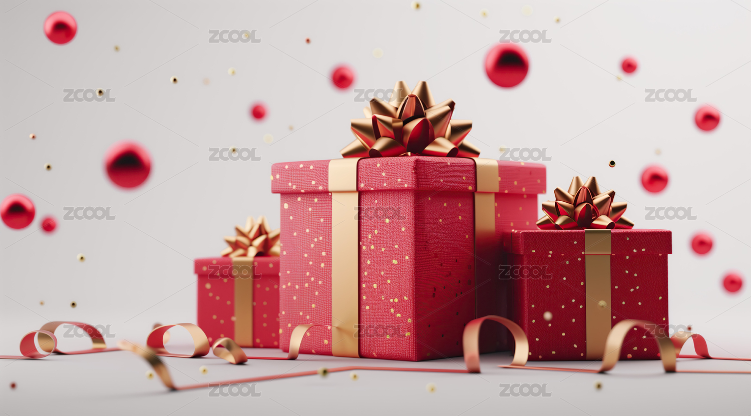红色礼盒3D渲染场景