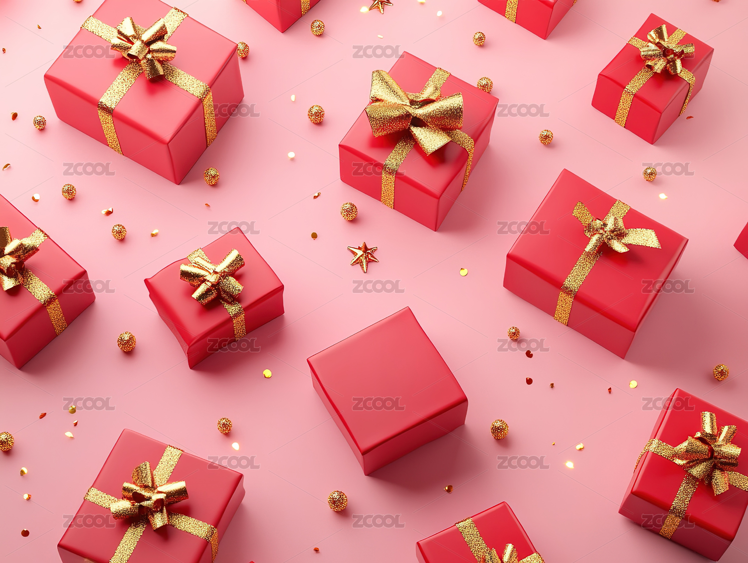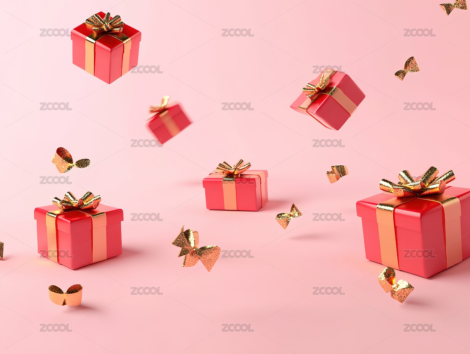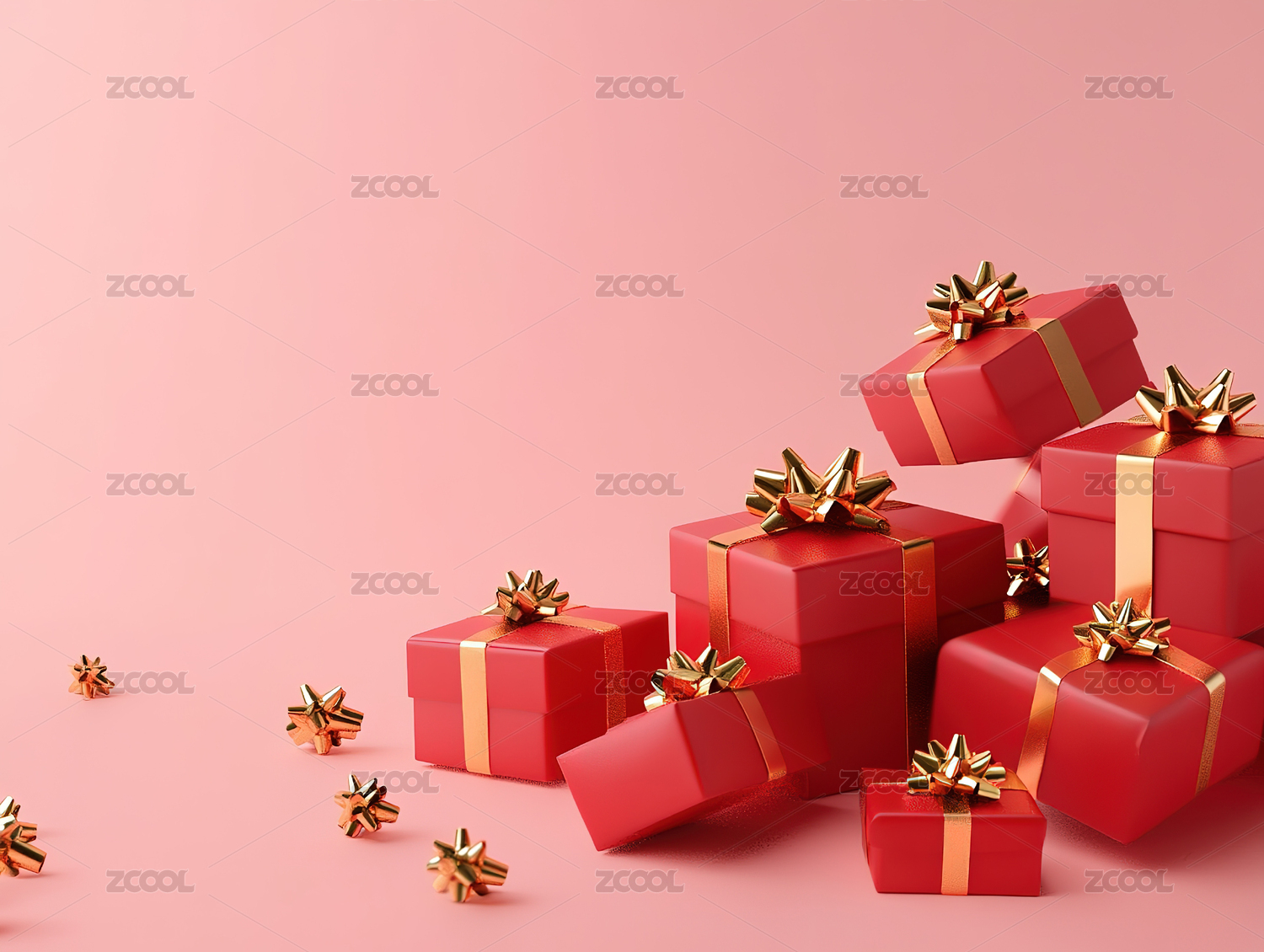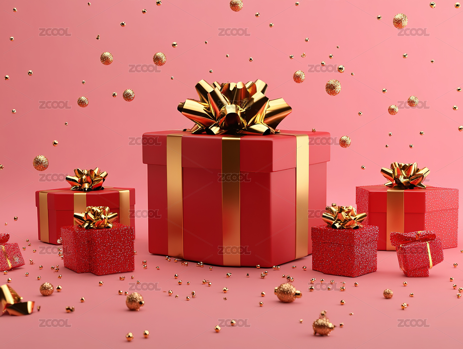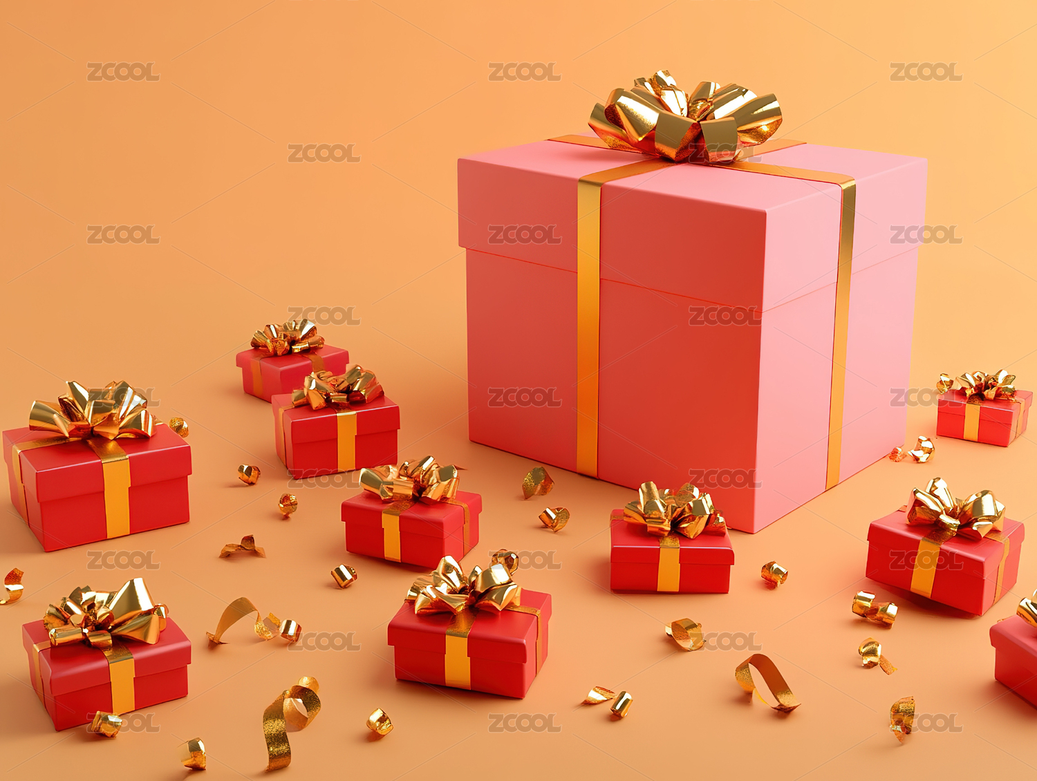 红色礼盒3D渲染场景