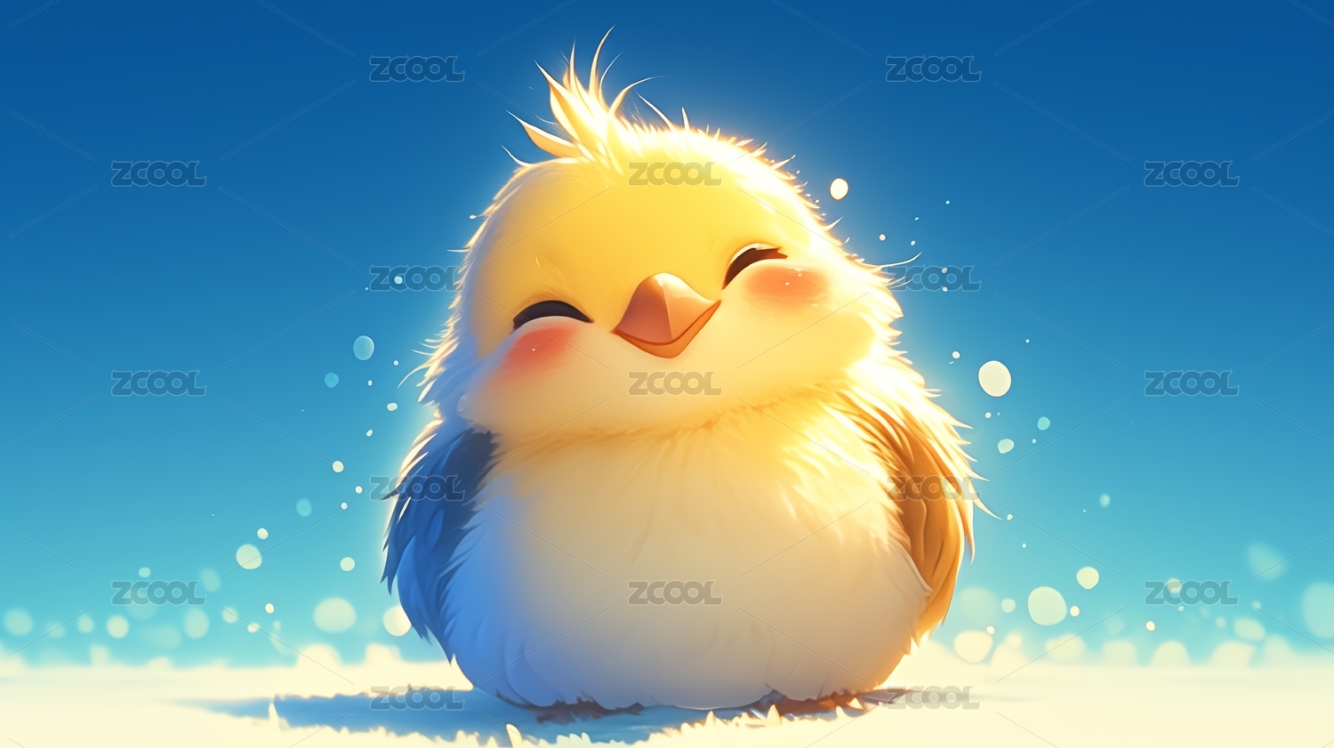 一只站在枝头上毛茸茸的可爱小鸟插画