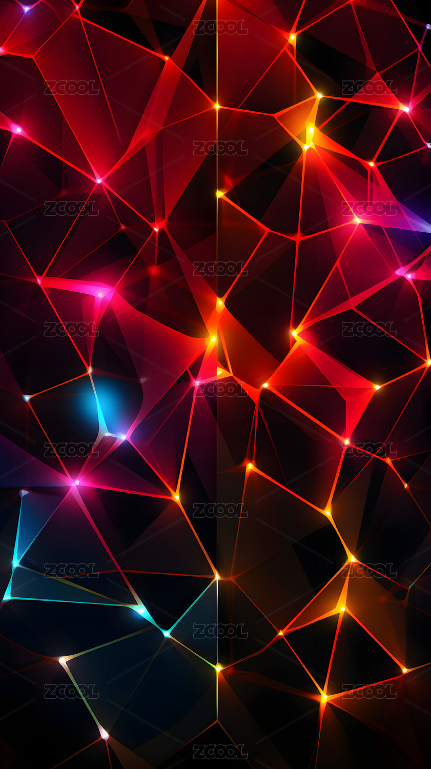数码彩色发光网络线条抽象图形海报背景