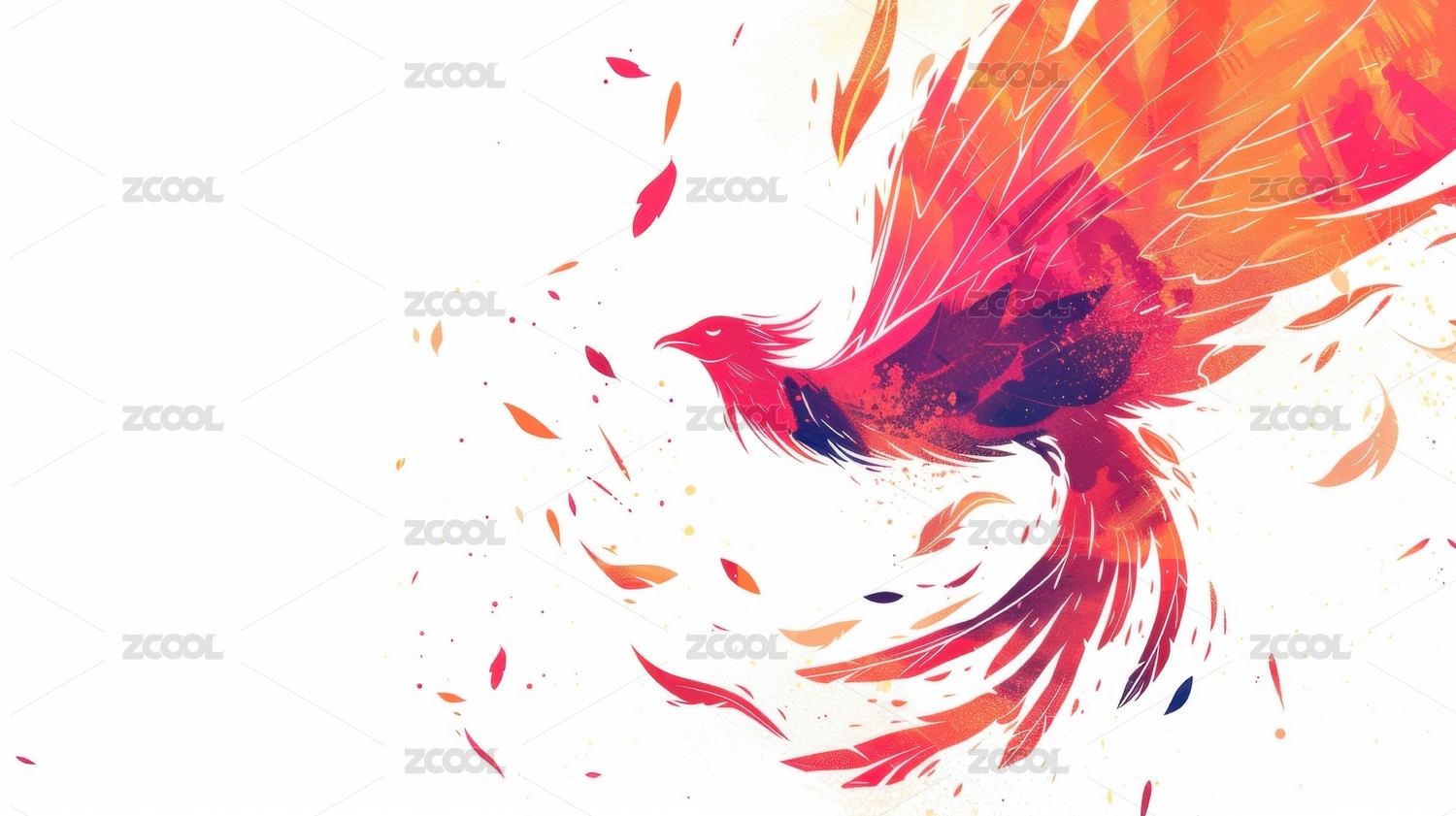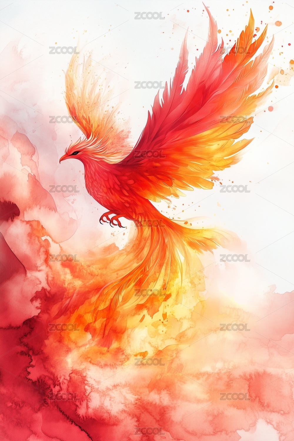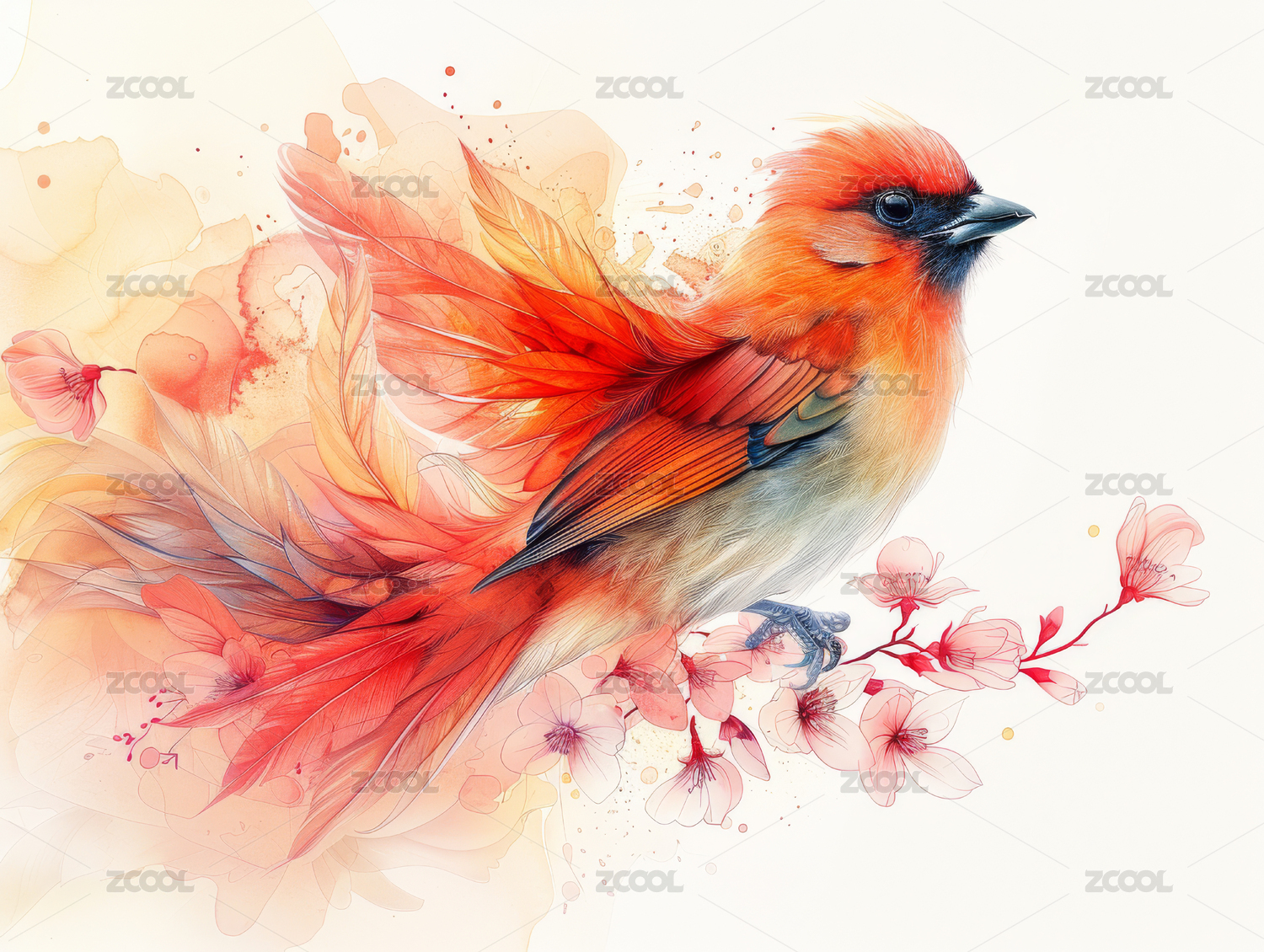 红鸟,水彩画,写意,花朵,春日,鸟类,羽毛,艺术,绘画,插画