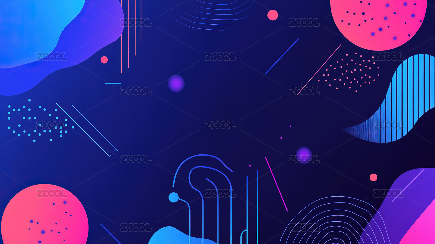 蓝色孟菲斯元素组合图形 抽象风格背景