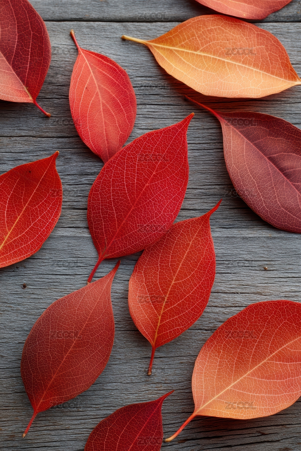 秋天的红叶在木板上的静美