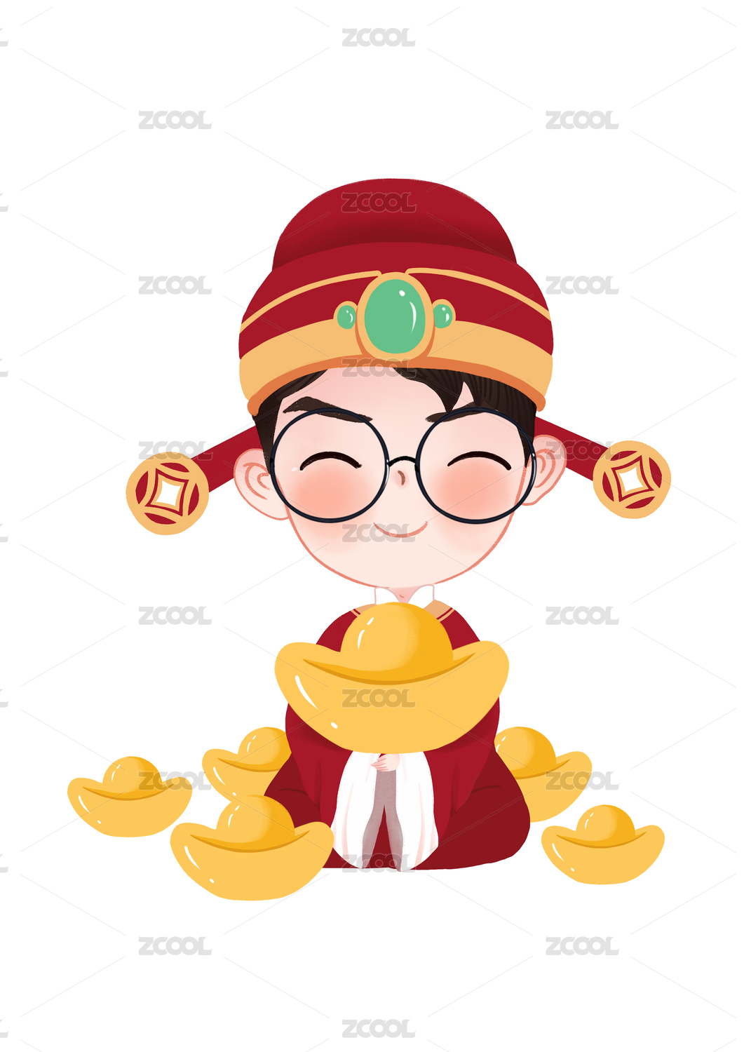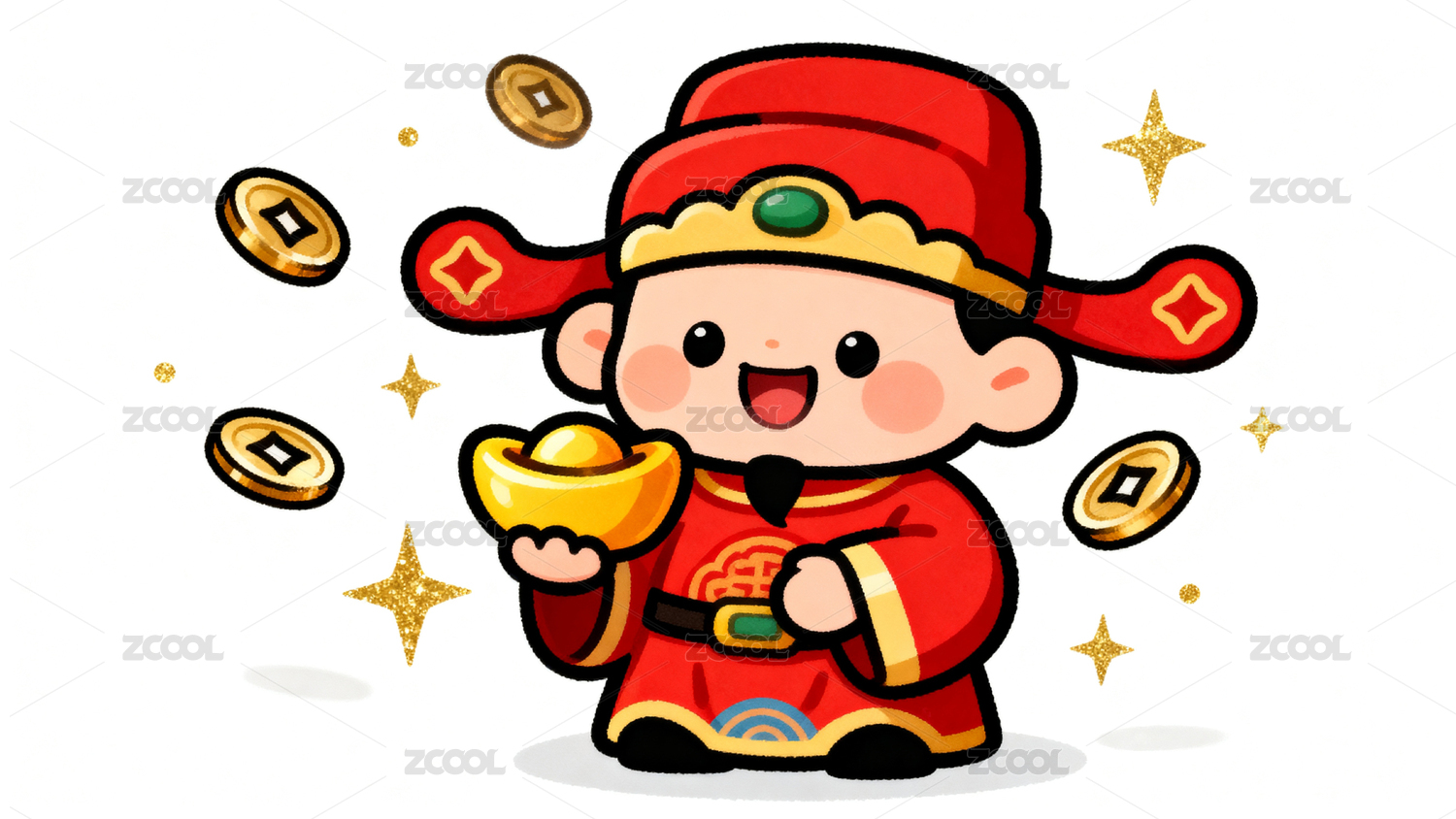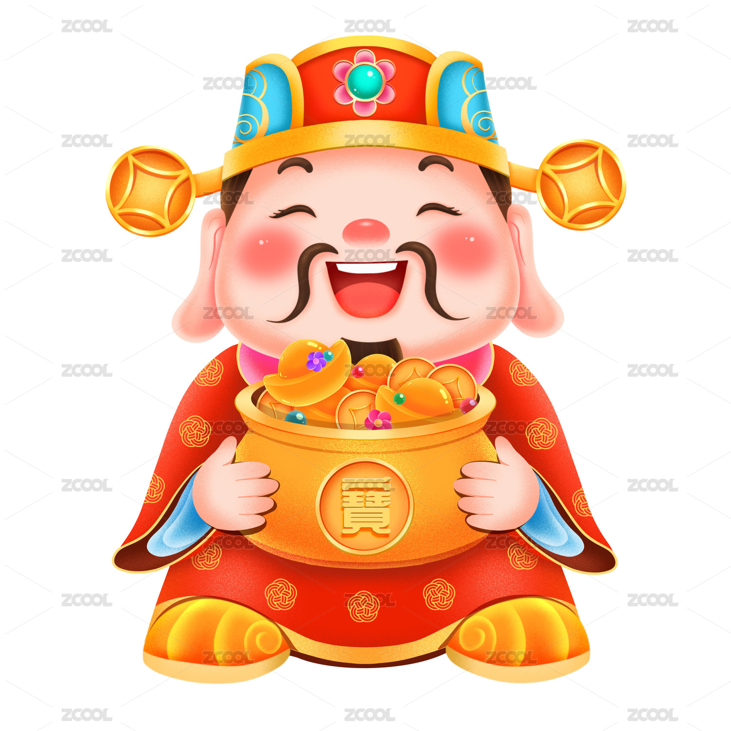 卡通财神爷手持金元宝