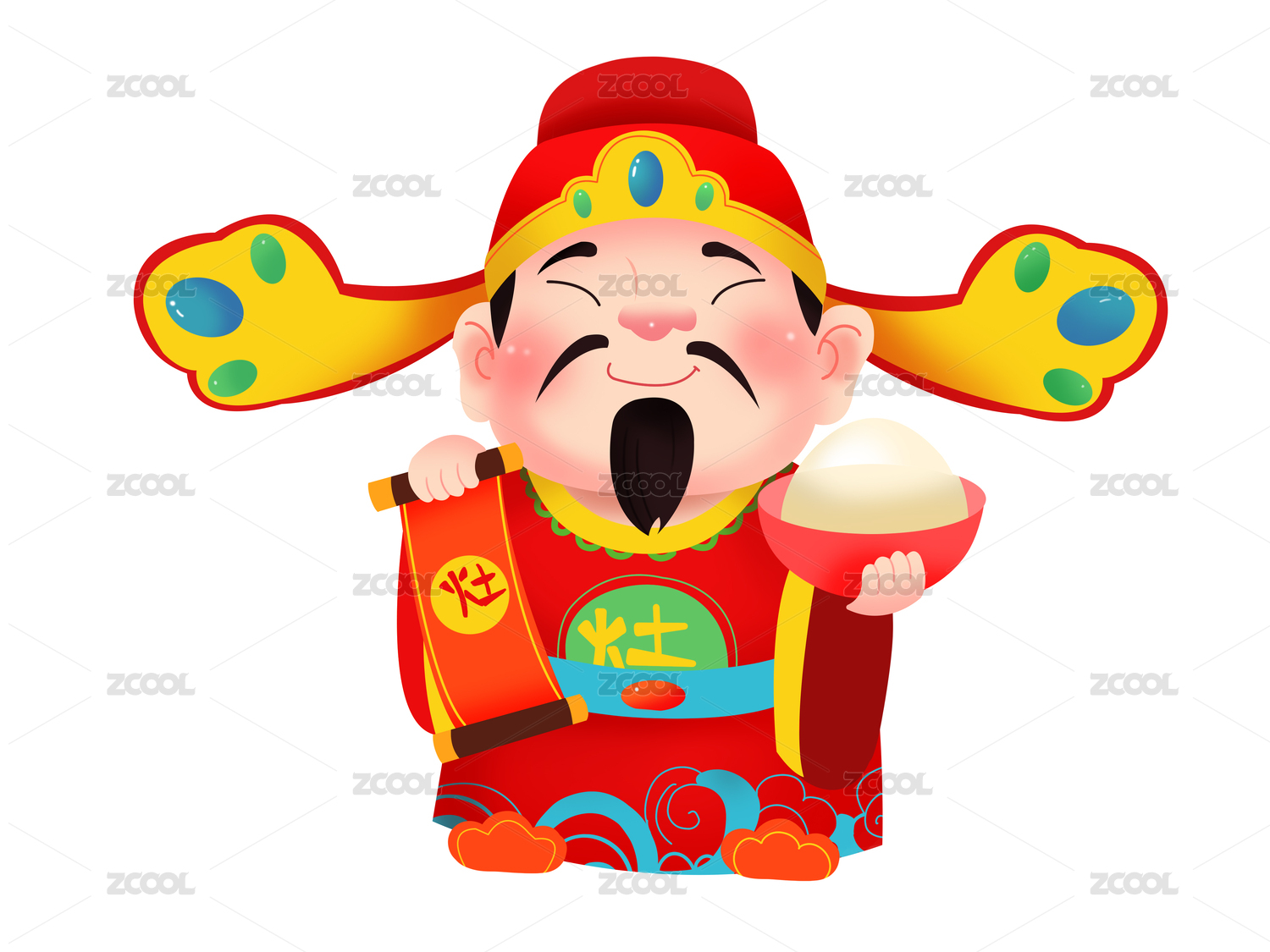 祭拜灶王爷红色衣服戴管帽灶王爷拿饭碗