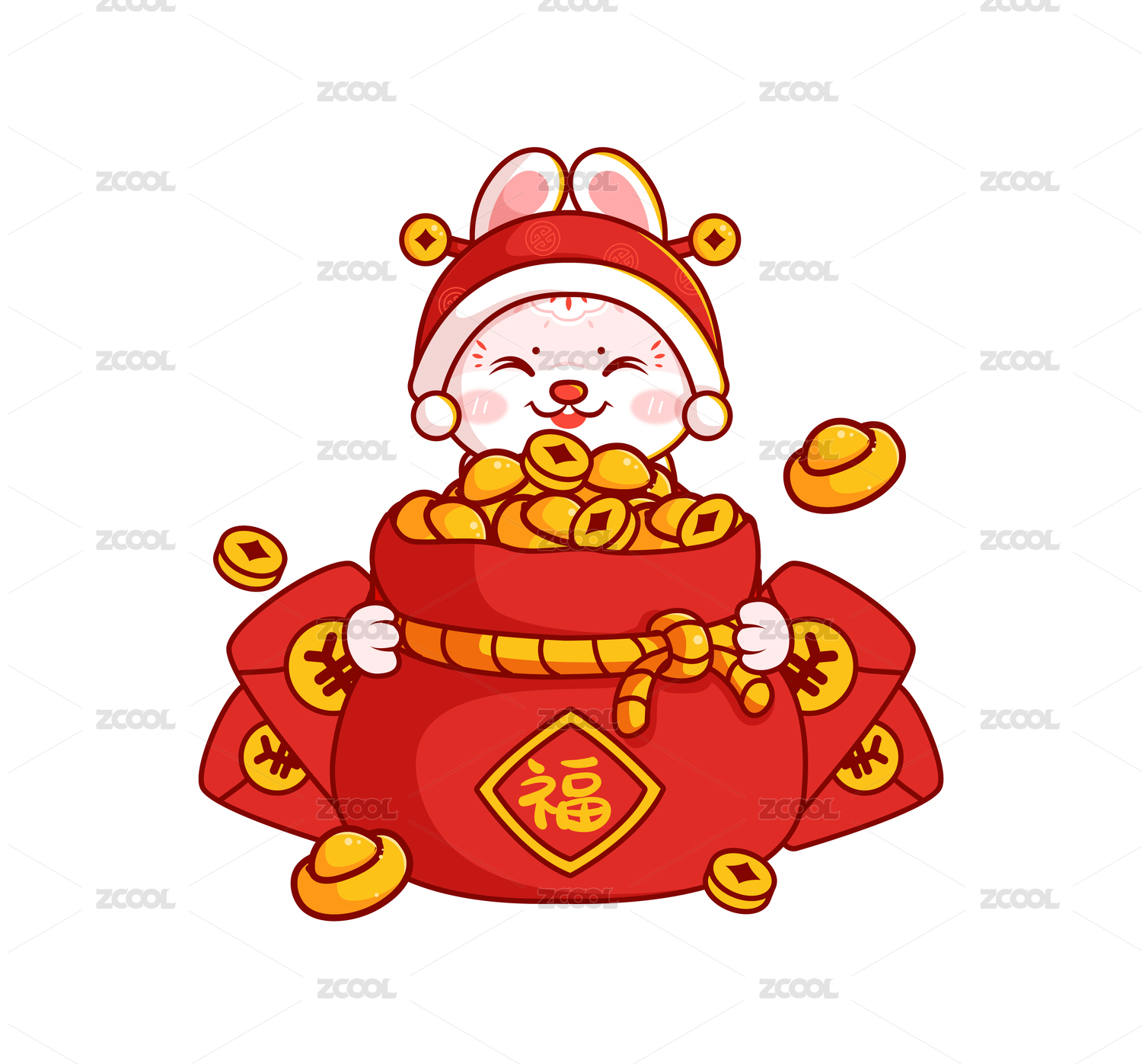 手抱福袋的兔子