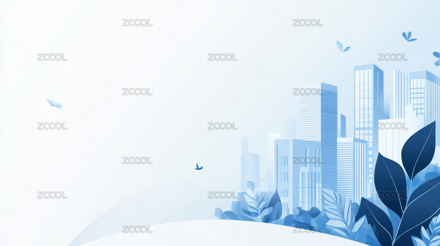 蓝色渐变城市建筑剪影