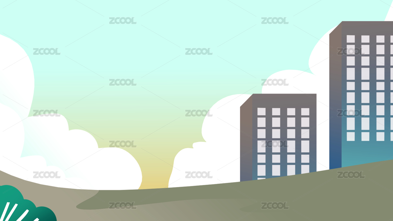 卡通手绘绿色城市背景横图插画
