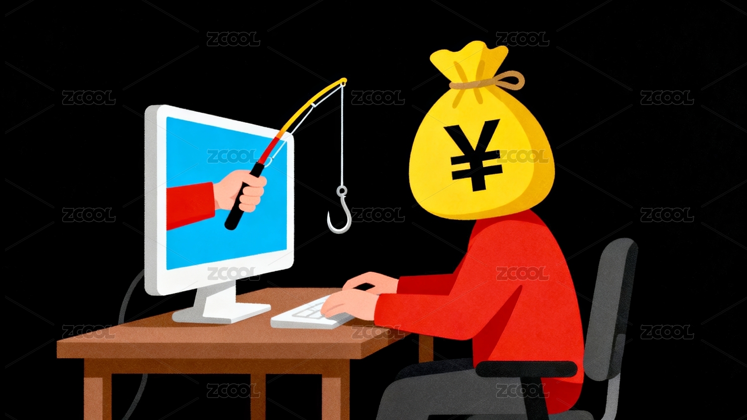 卡通手绘电信诈骗插画