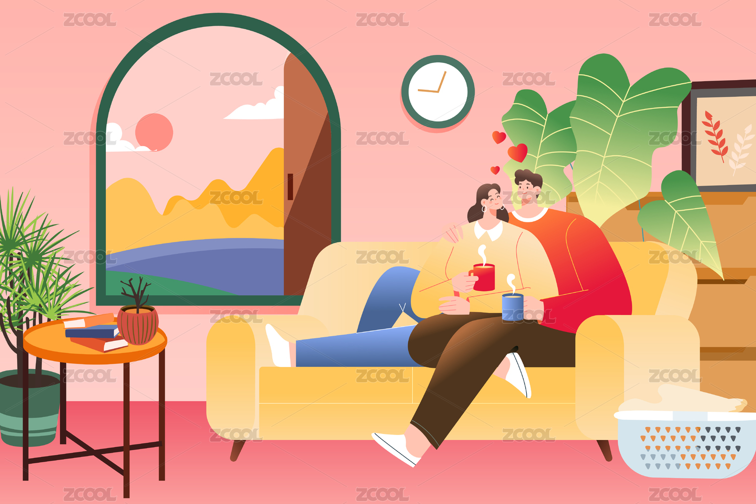 情侣居家度假矢量插画