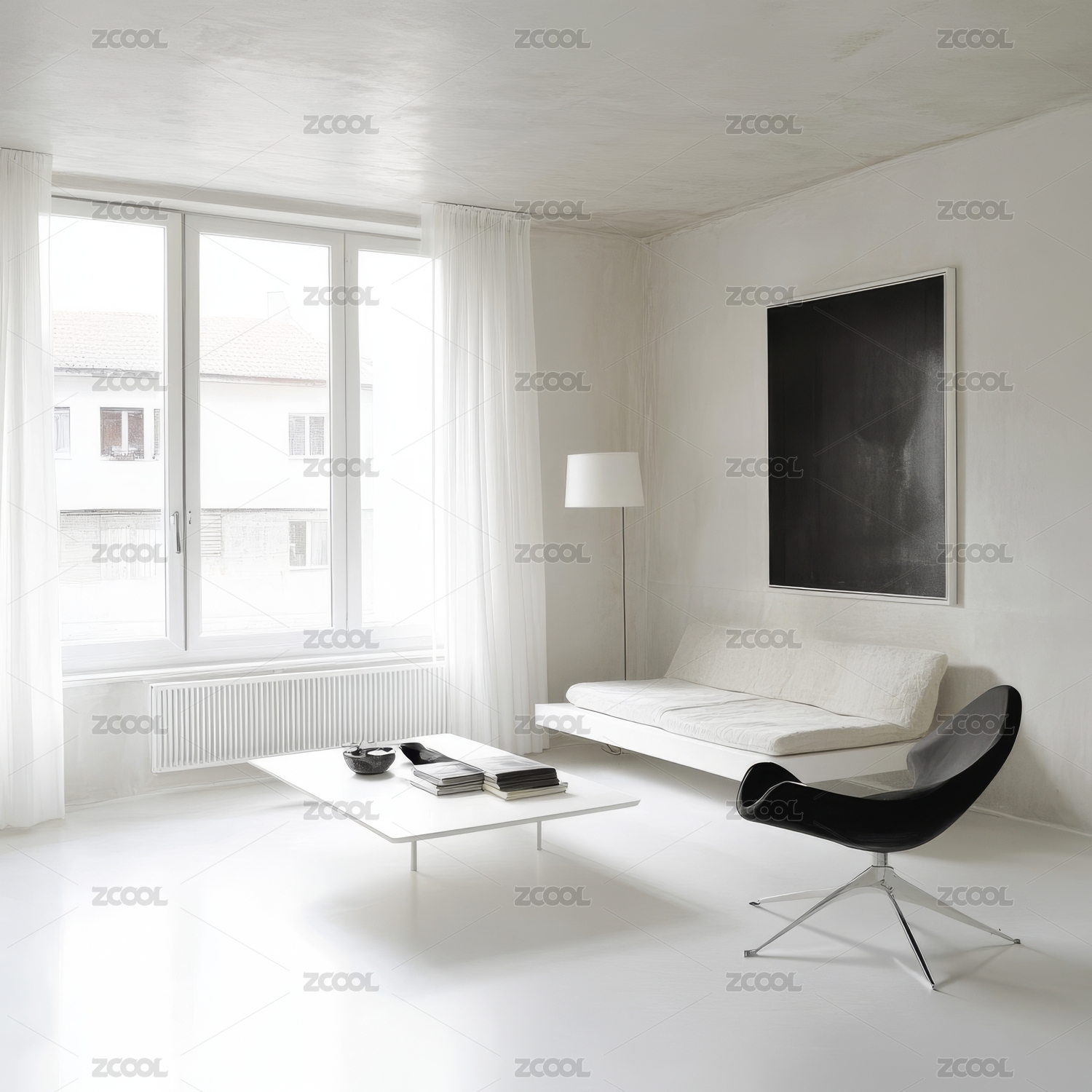 简约现代客厅,白色沙发与大窗设计