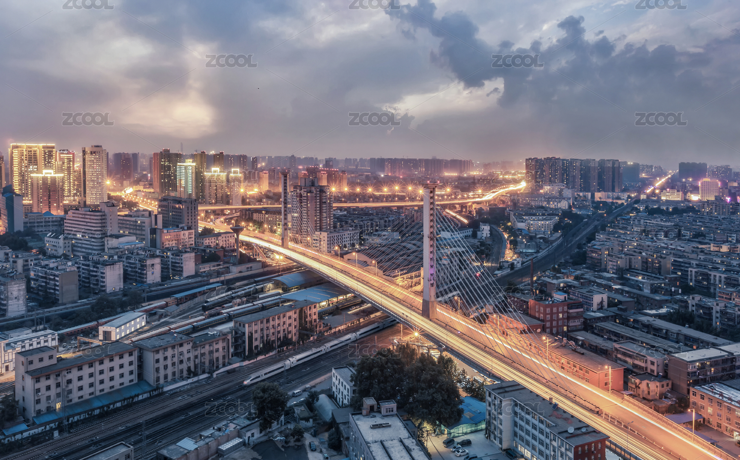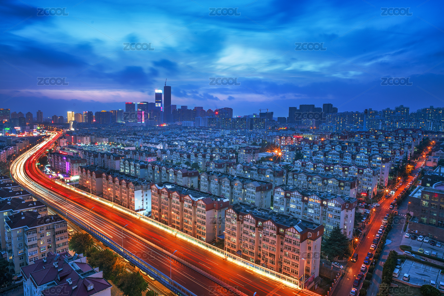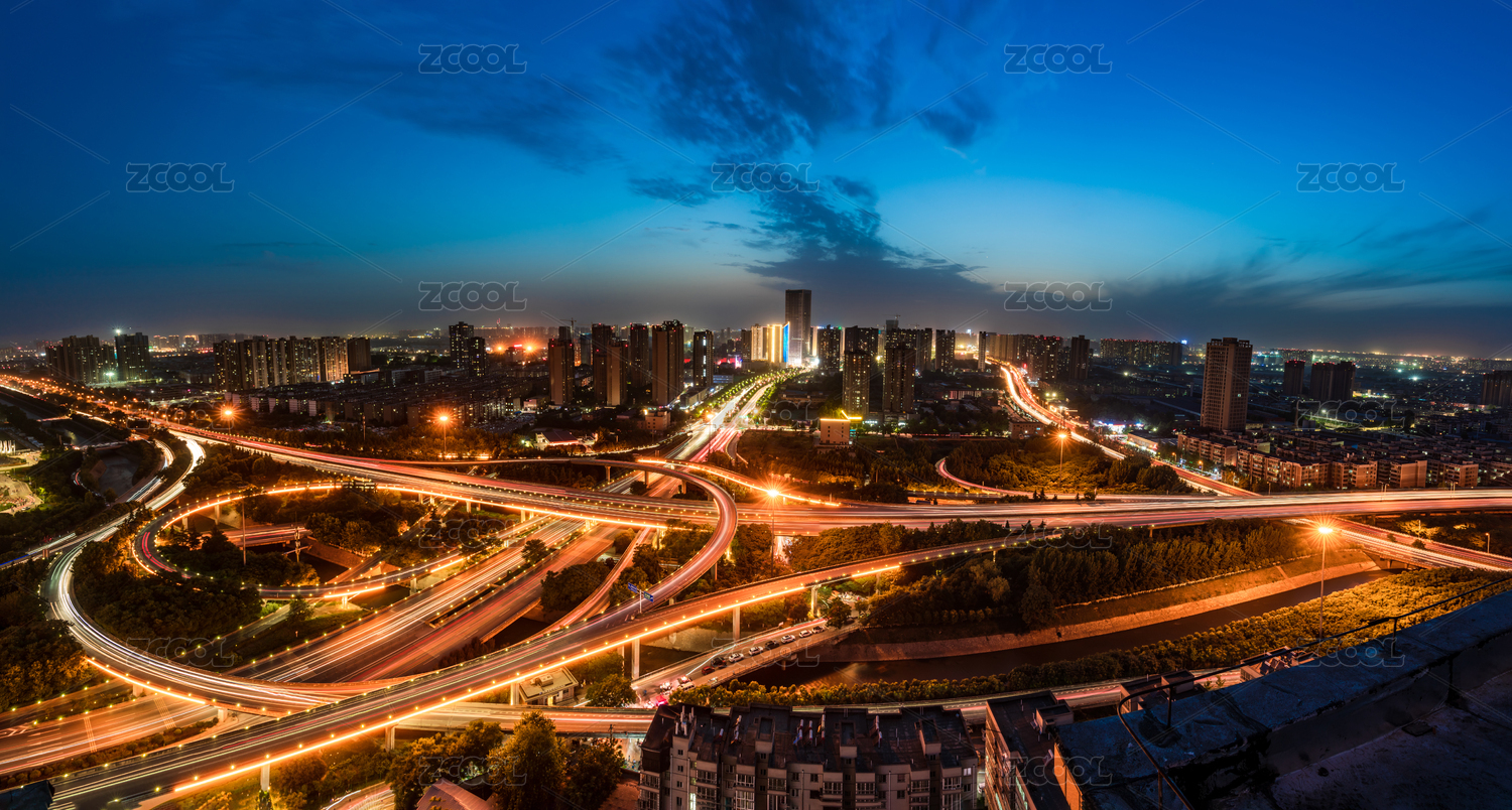 中国江苏省南京市江北区夜晚灯光立交桥建筑