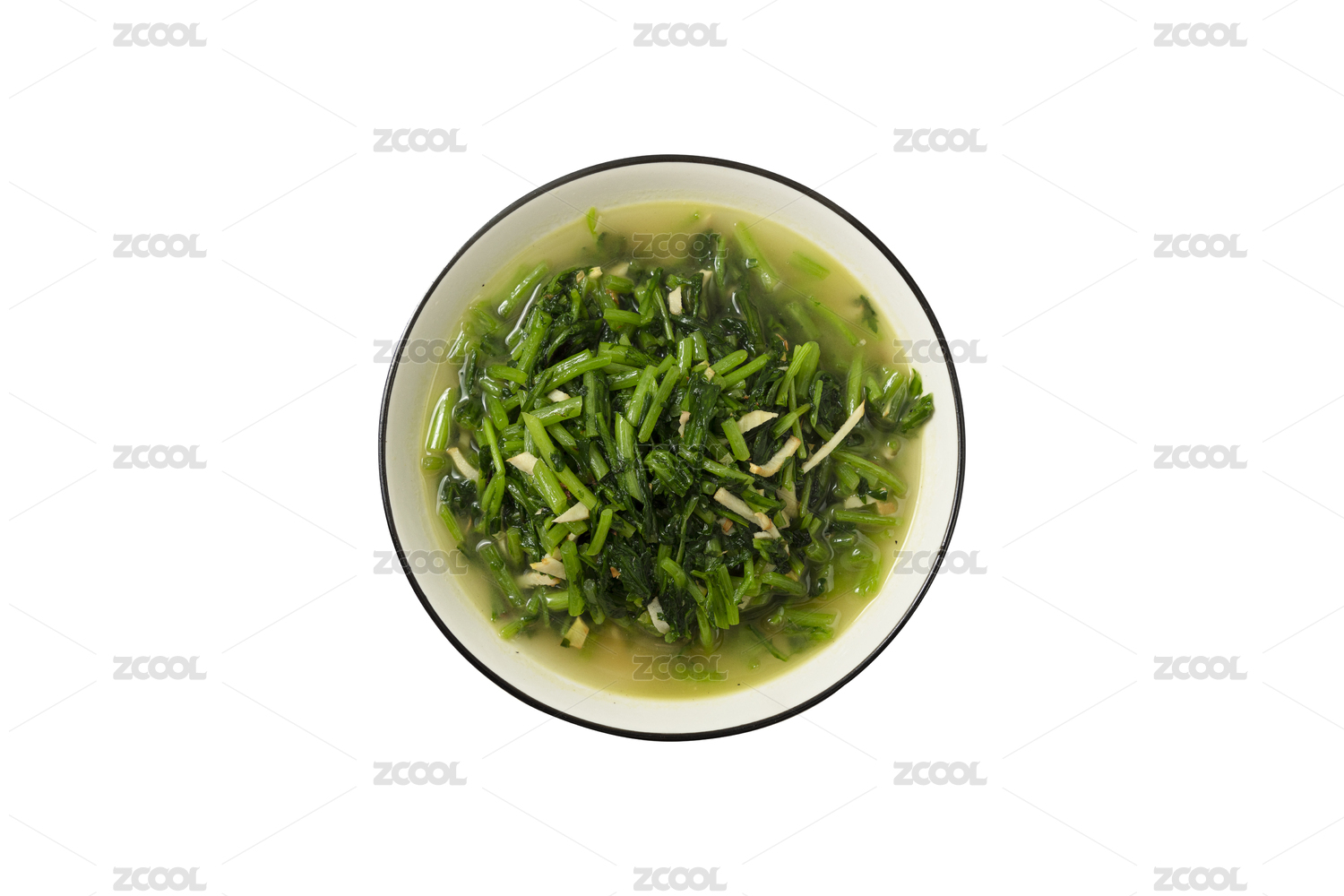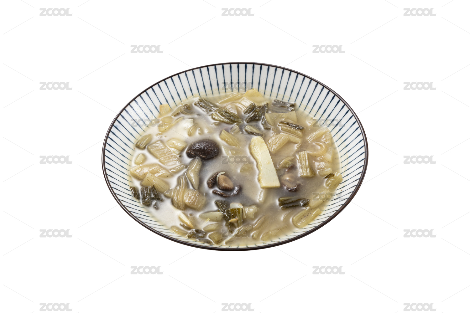 白色背景中一碗腌菜汤