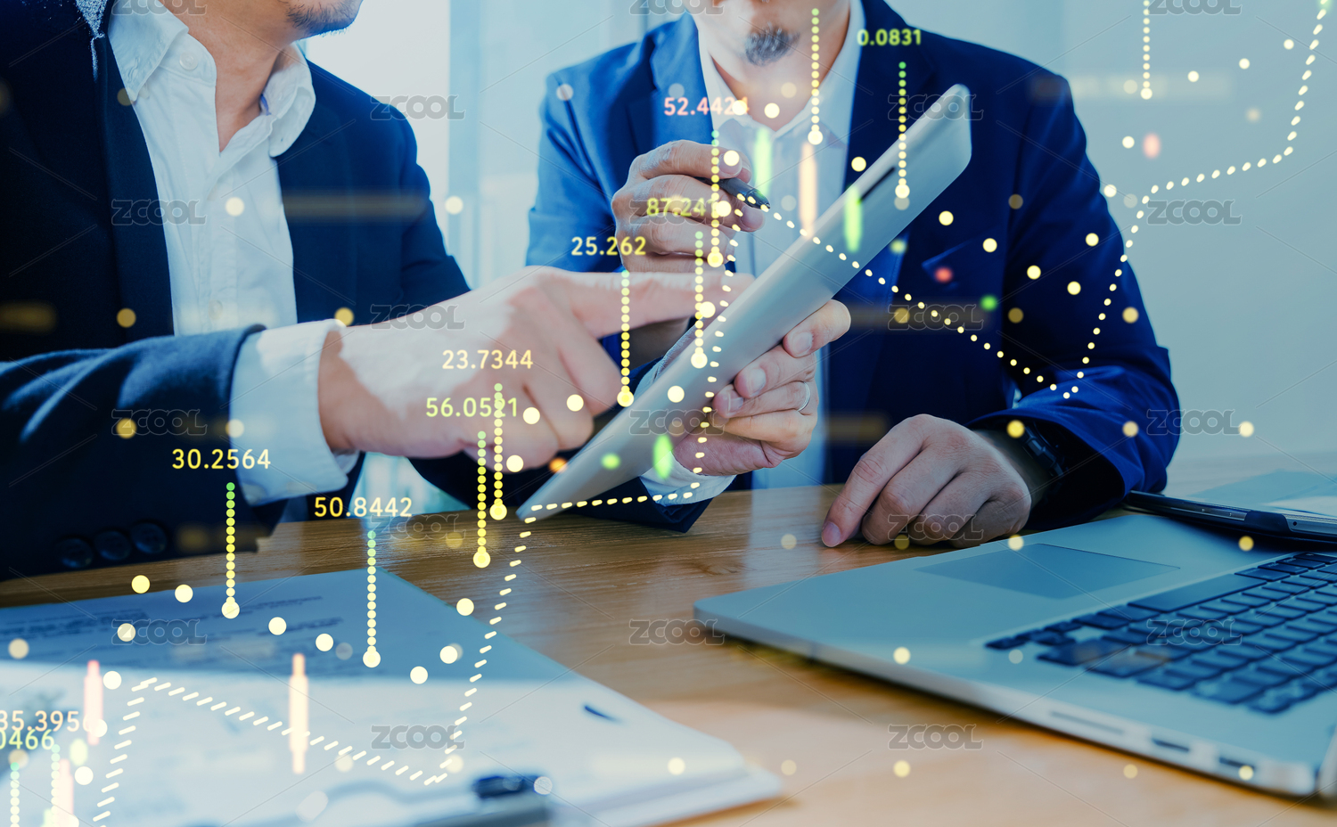 商人们在讨论生意上的未来计划与增长图表特效图设计。