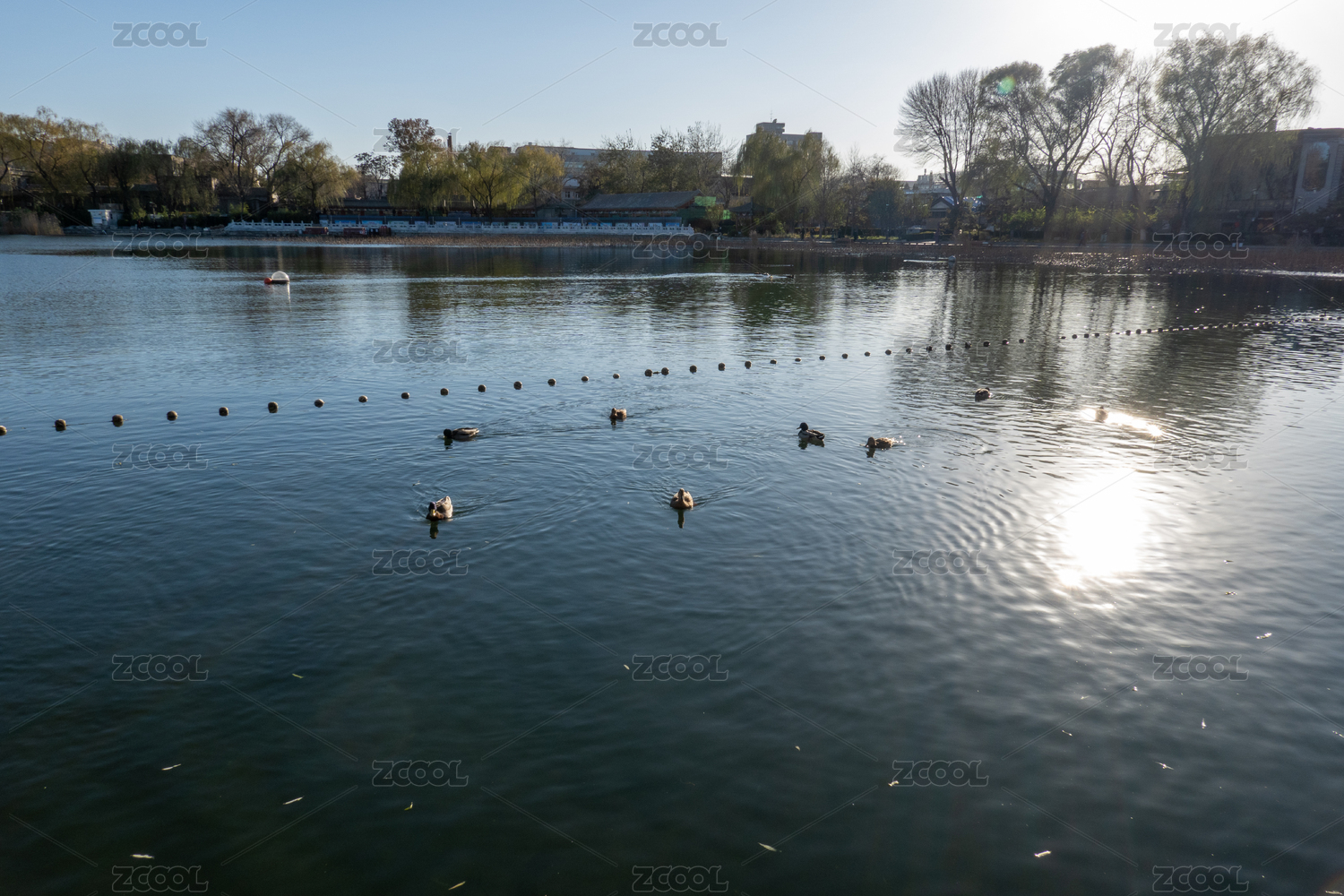中国北京北海公园冬日湖面鸳鸯鸭子