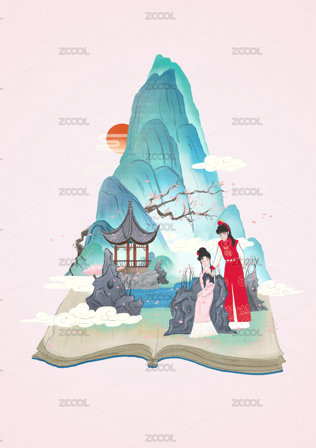 国潮古风中国风红楼梦牡丹亭汉服工笔画插画