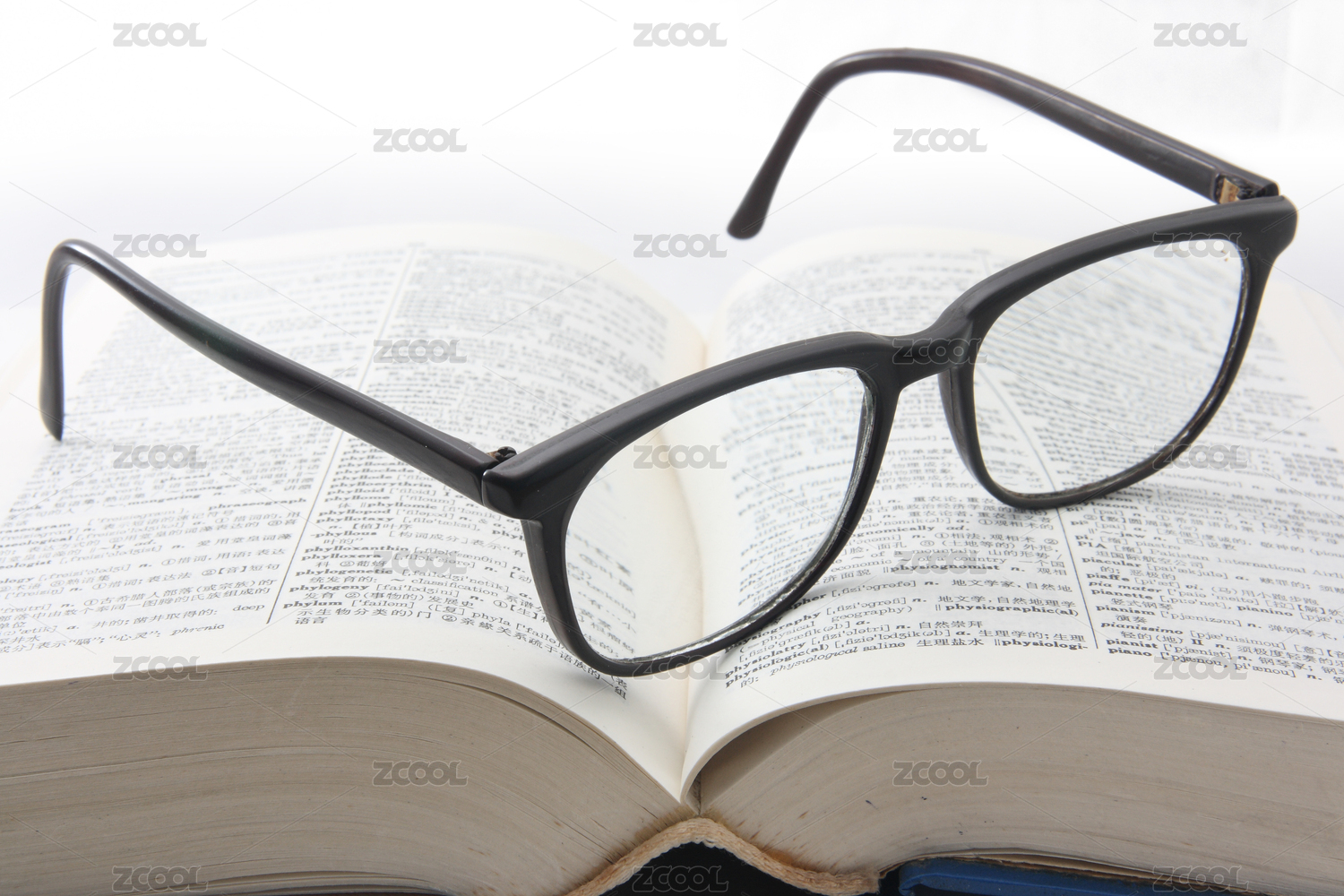 眼镜,书籍,彩色图片,中国,东亚,白色背景,厚的,室内,教科书,静物