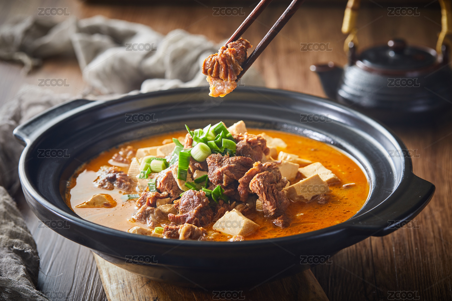 砂锅水煮牛肉内酯豆腐