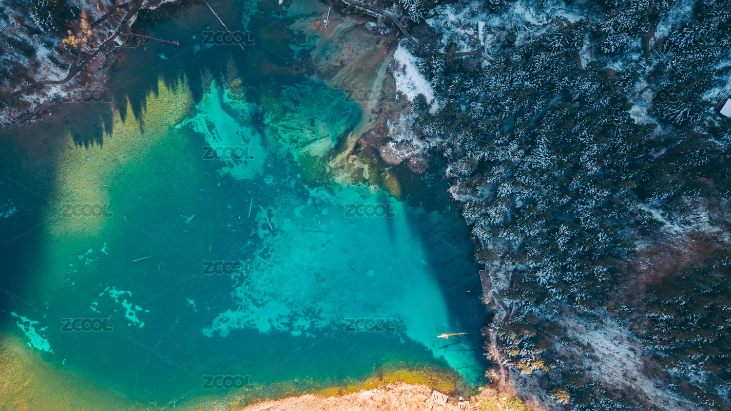 雪地中的蓝绿色河流