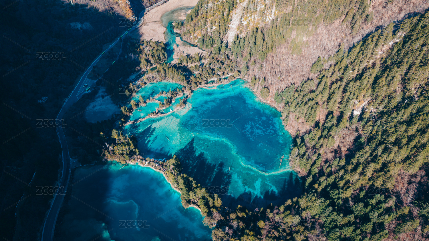 航拍初冬的九寨沟风光,五花海