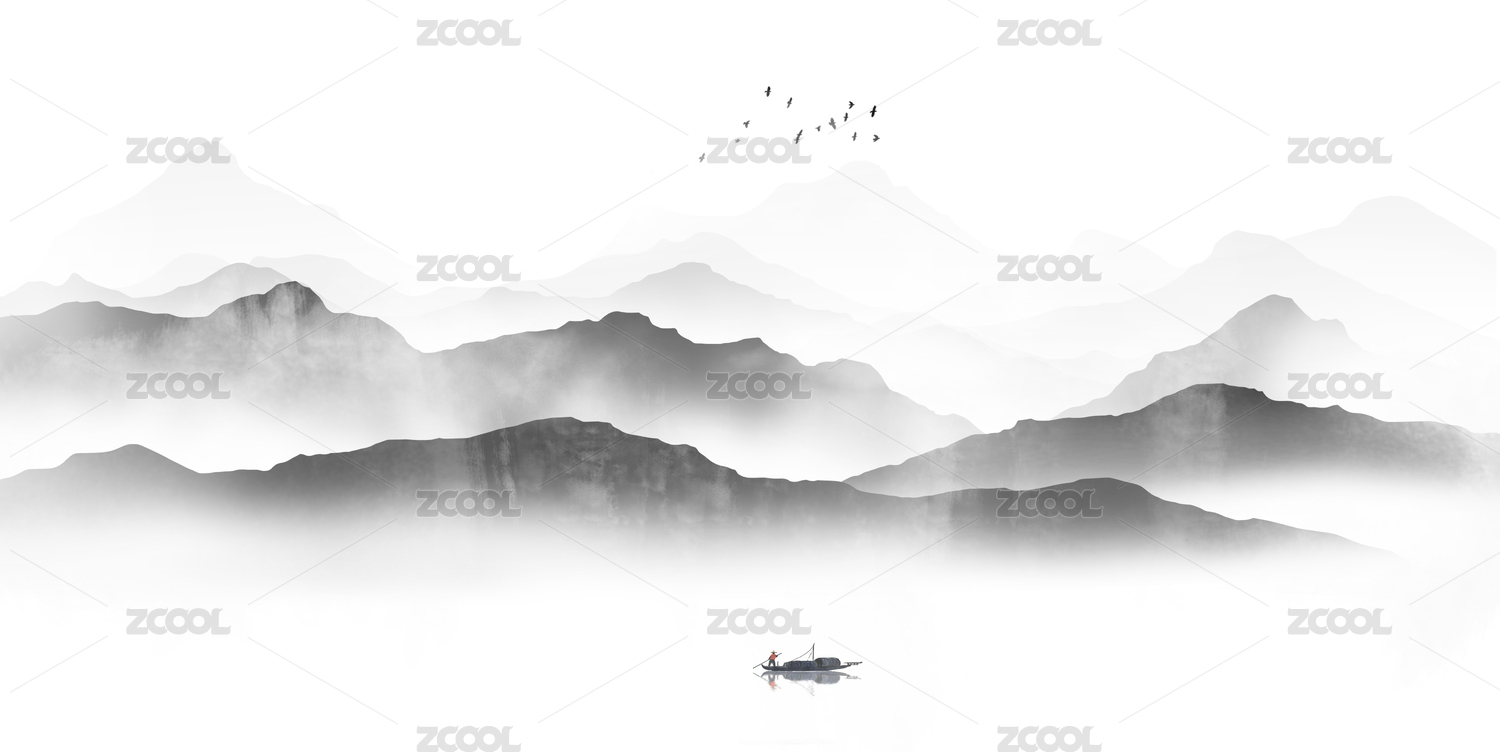 中国风,插画,山水,山水画,写意,画,古典,复古,写意画,山脉