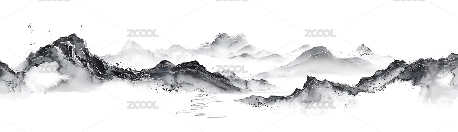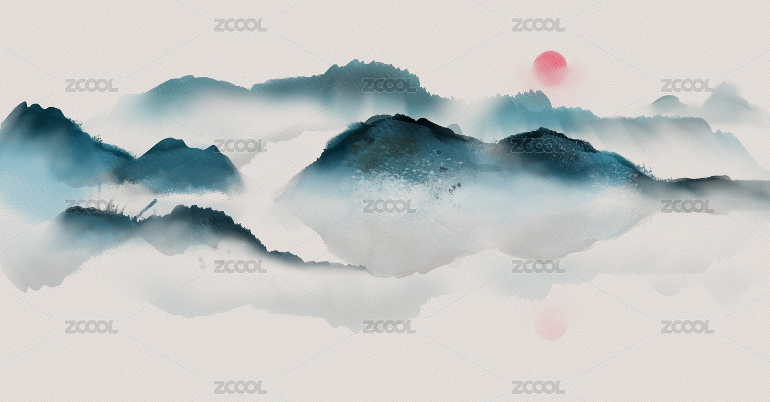 中国风,插画,山水,山水画,写意,画,古典,复古,写意画,山脉