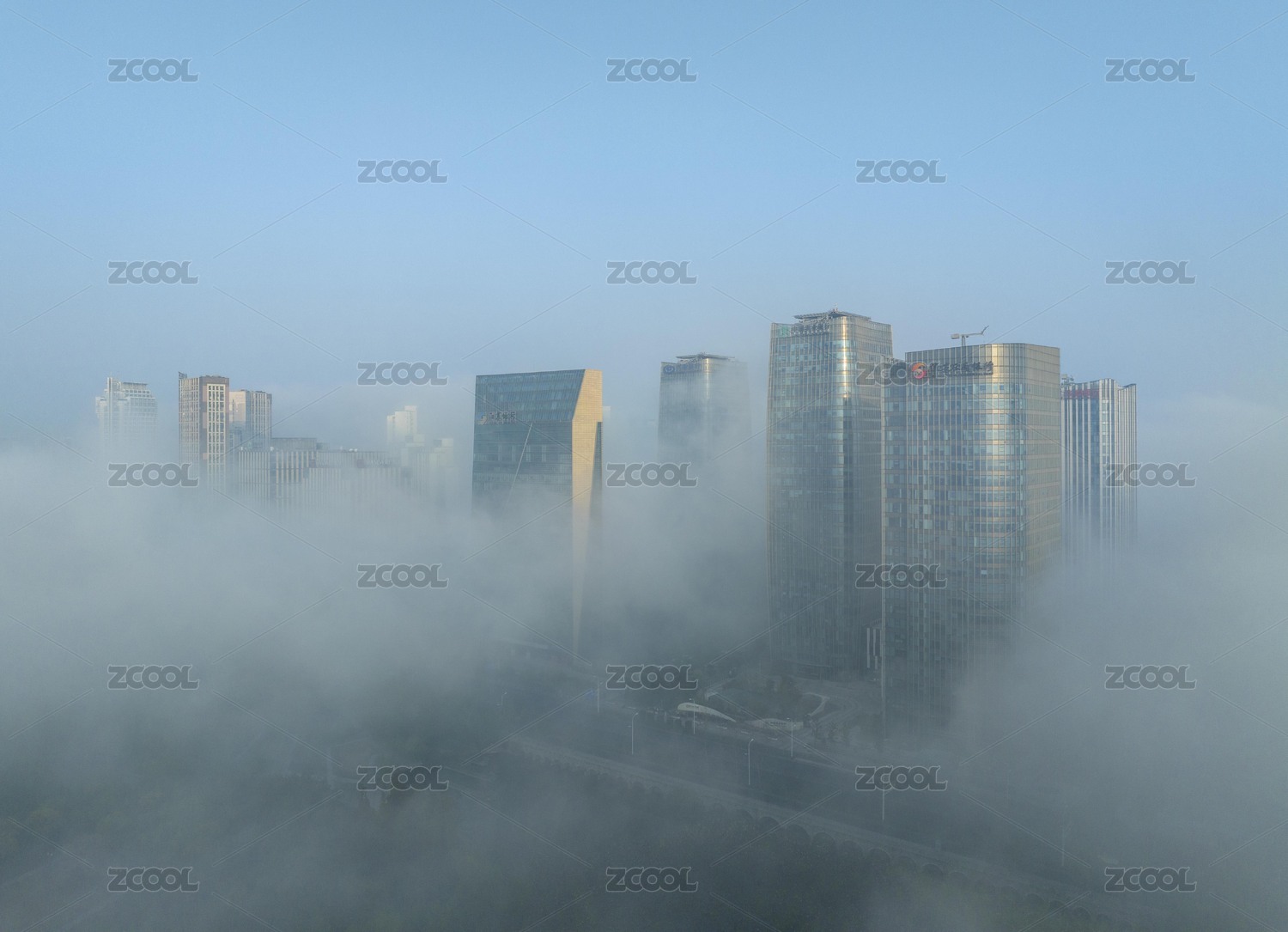 江西南昌红谷滩高空平流雾景观