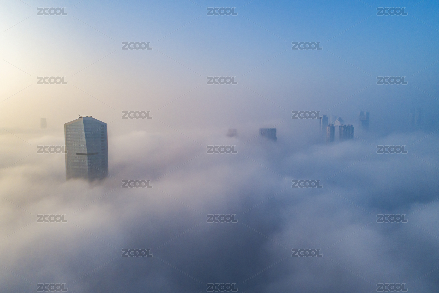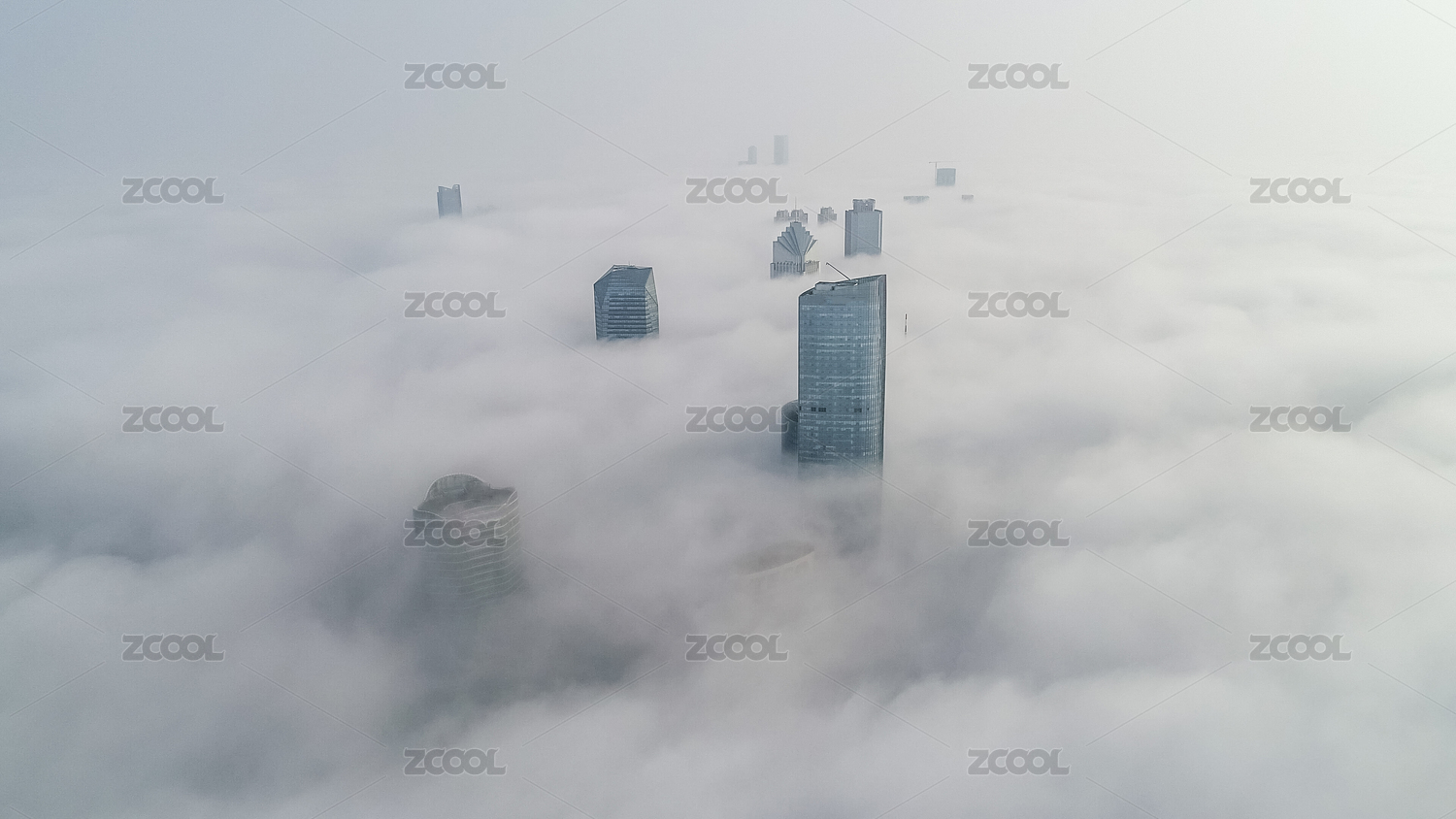 上海世贸广场平流雾航拍