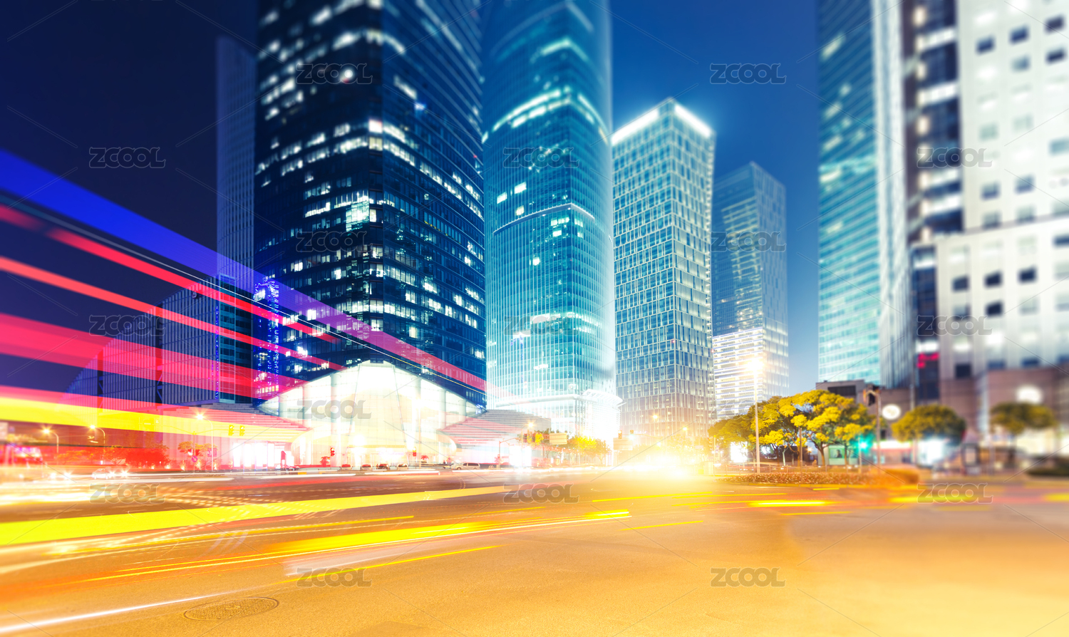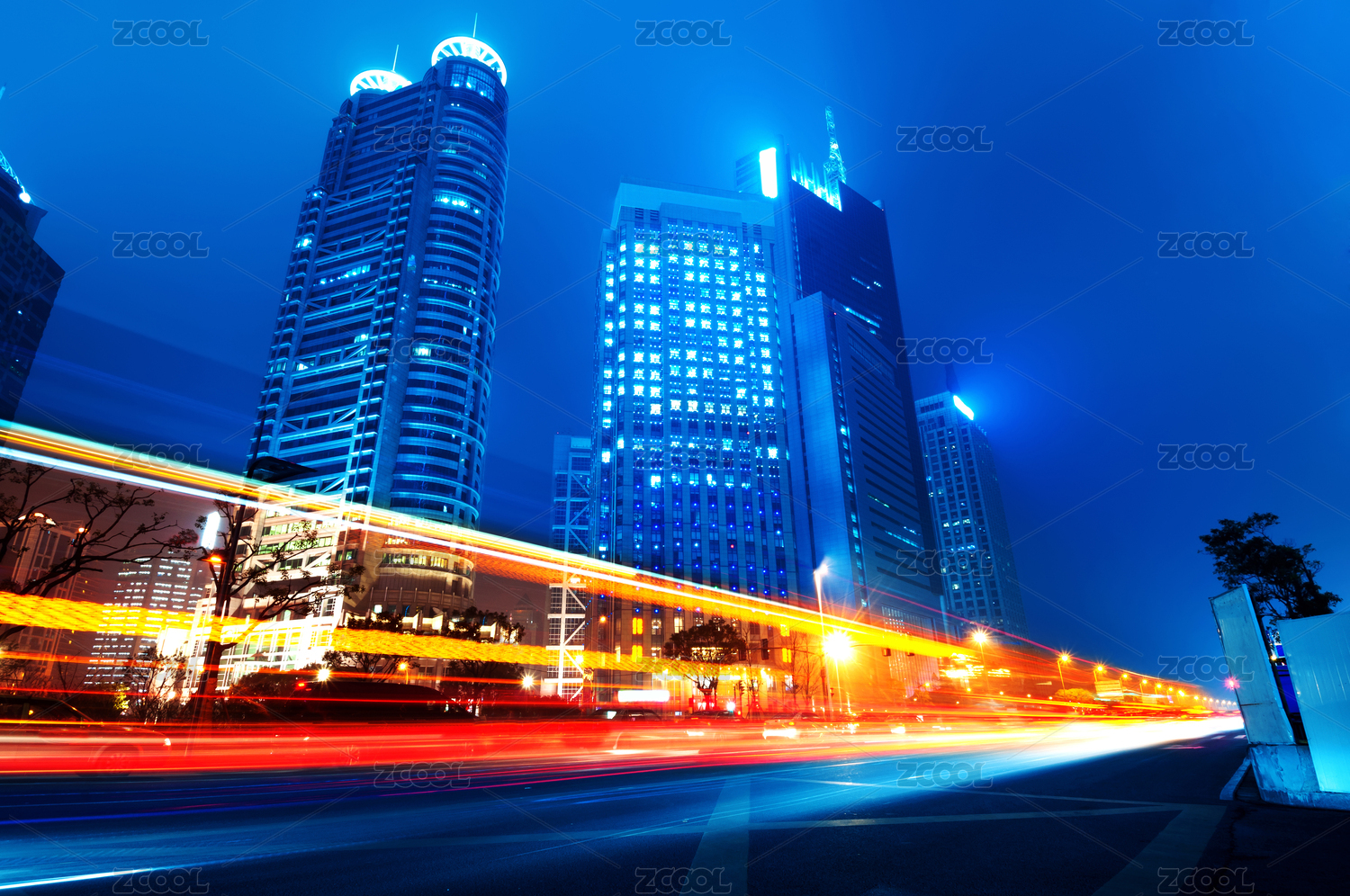 上海城市夜景飞驰的汽车尾灯形成的光的轨迹