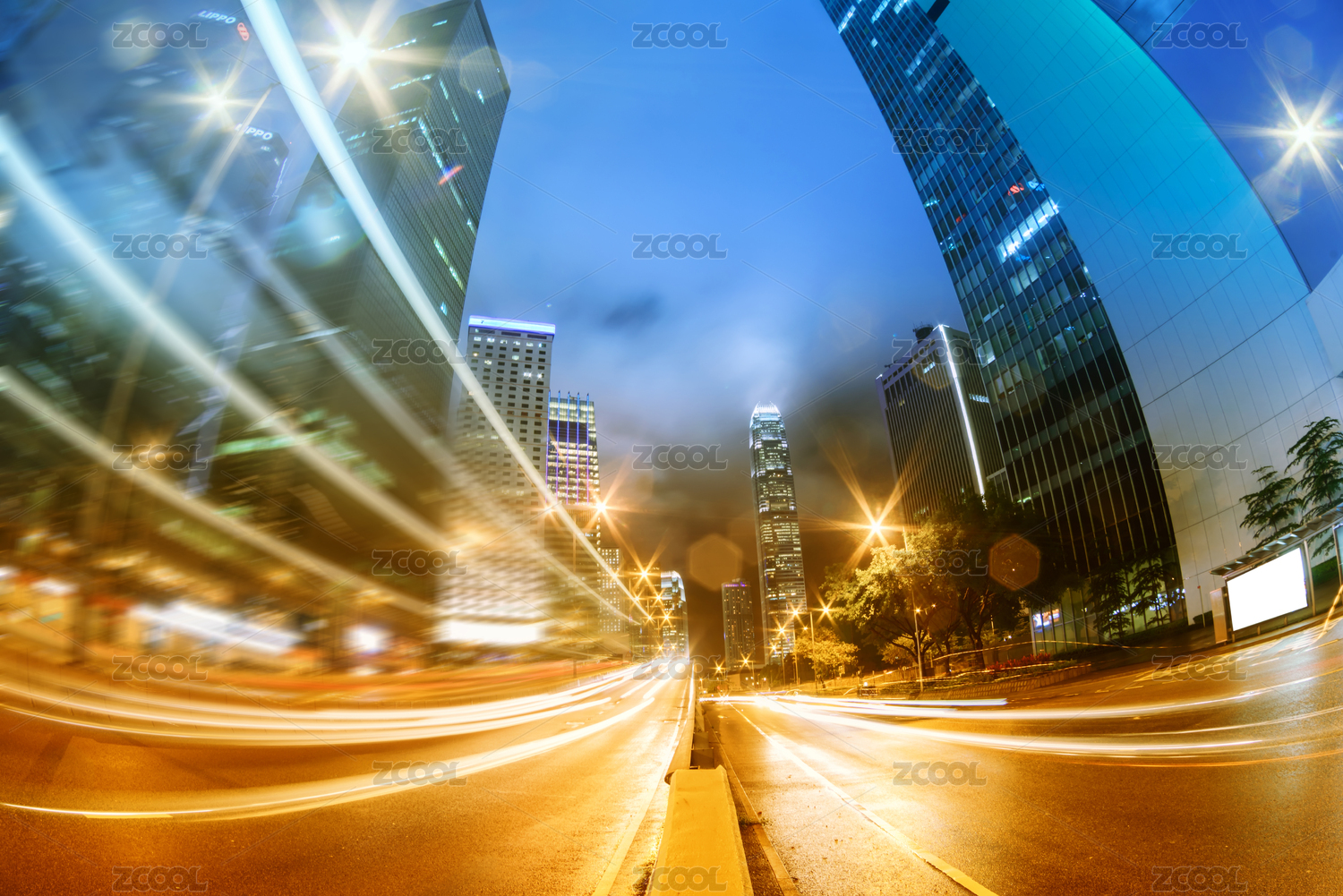 香港夜景,飞驰的汽车尾灯形成的光的轨迹