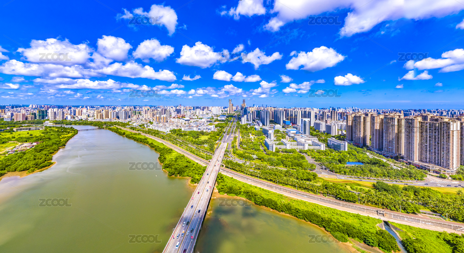 海南省海口市南渡江琼州大桥沿岸城市风光