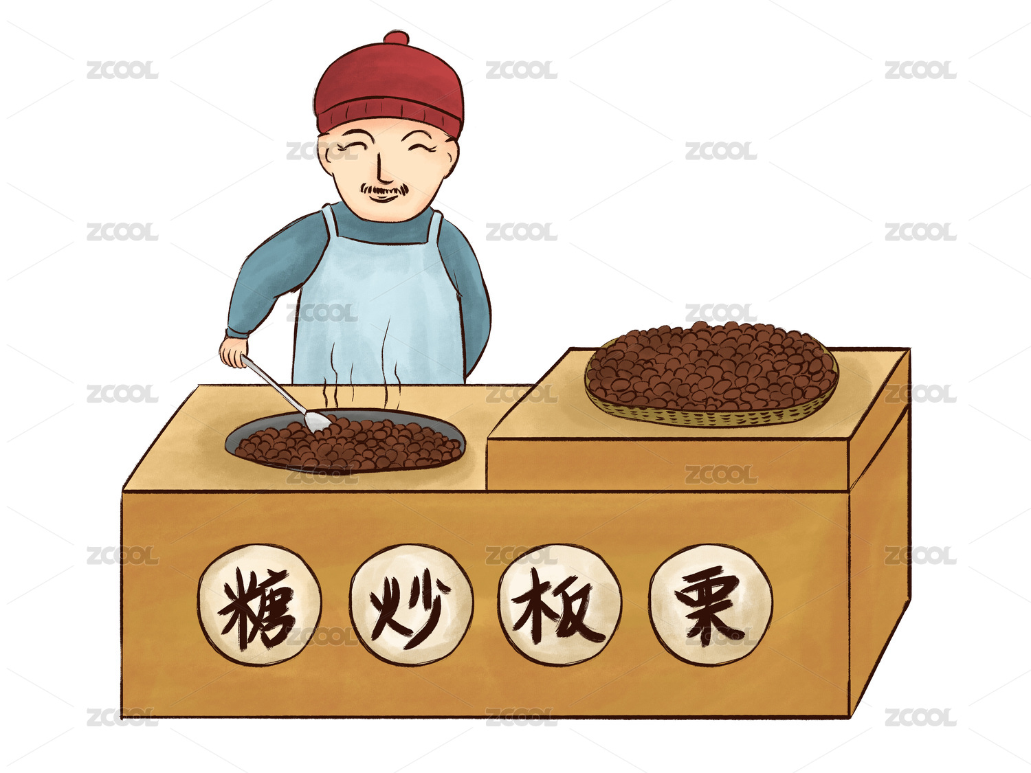 板栗,小寒,古风,炒板栗,摊贩,男女,古代,街边,素材,卡通