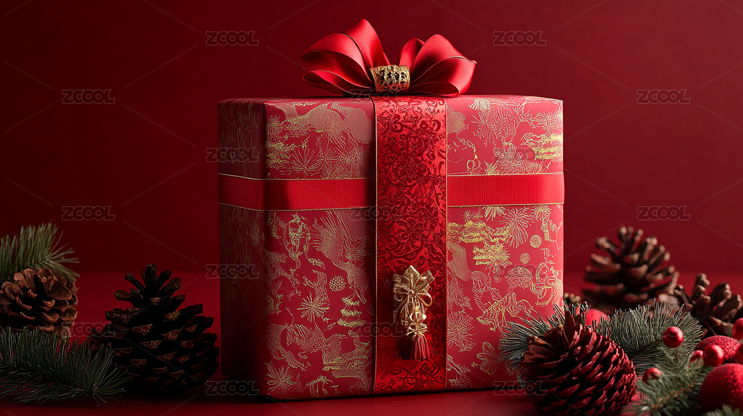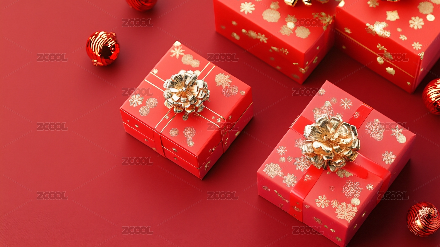 礼物,礼盒,红色,丝带,节日,新年,金色,装饰,包装,纸张