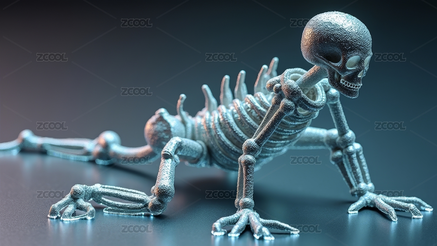 蓝色荧光恐龙骨架