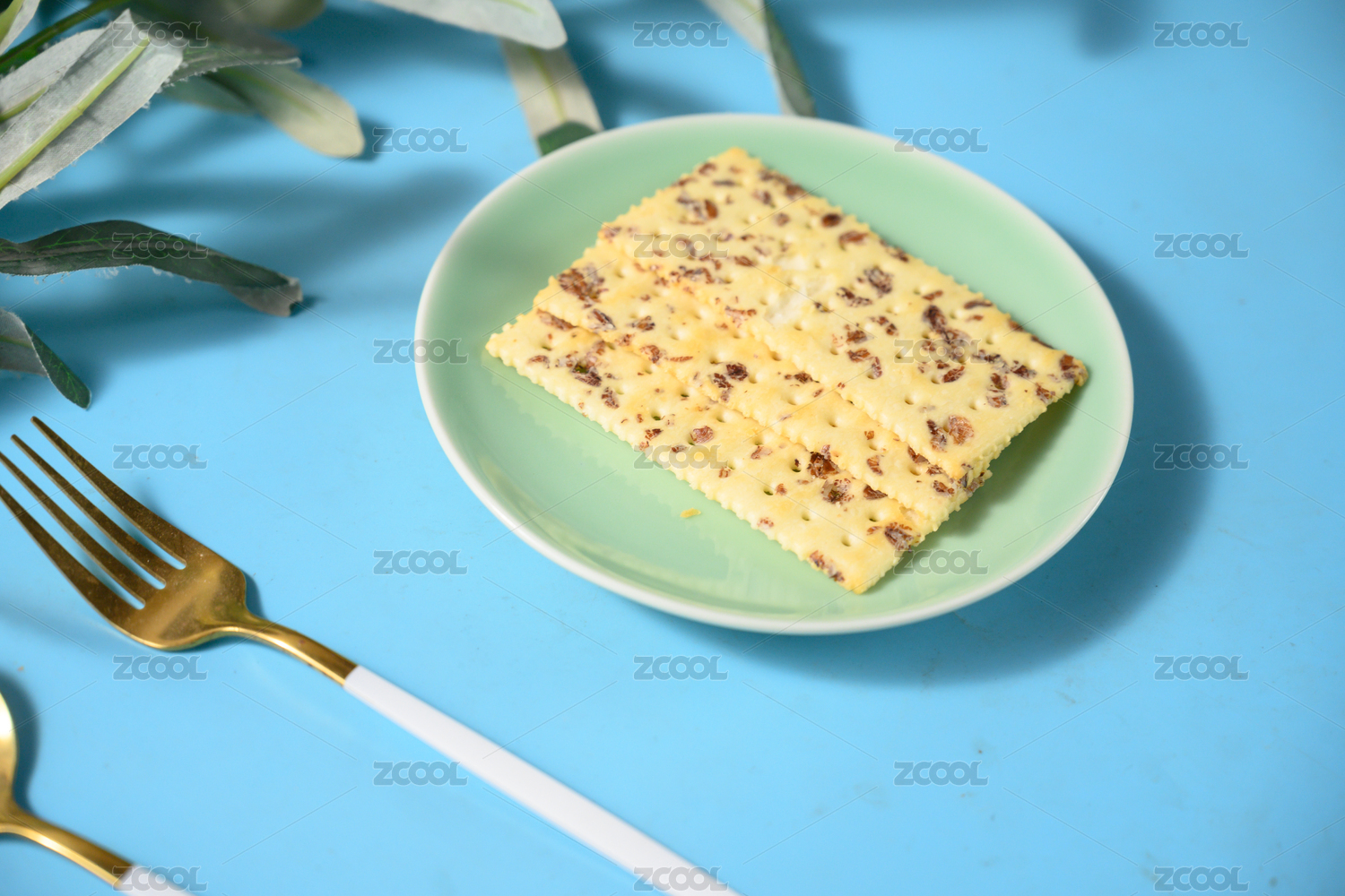 桌面上的盘子里的美味可口的压缩饼干
