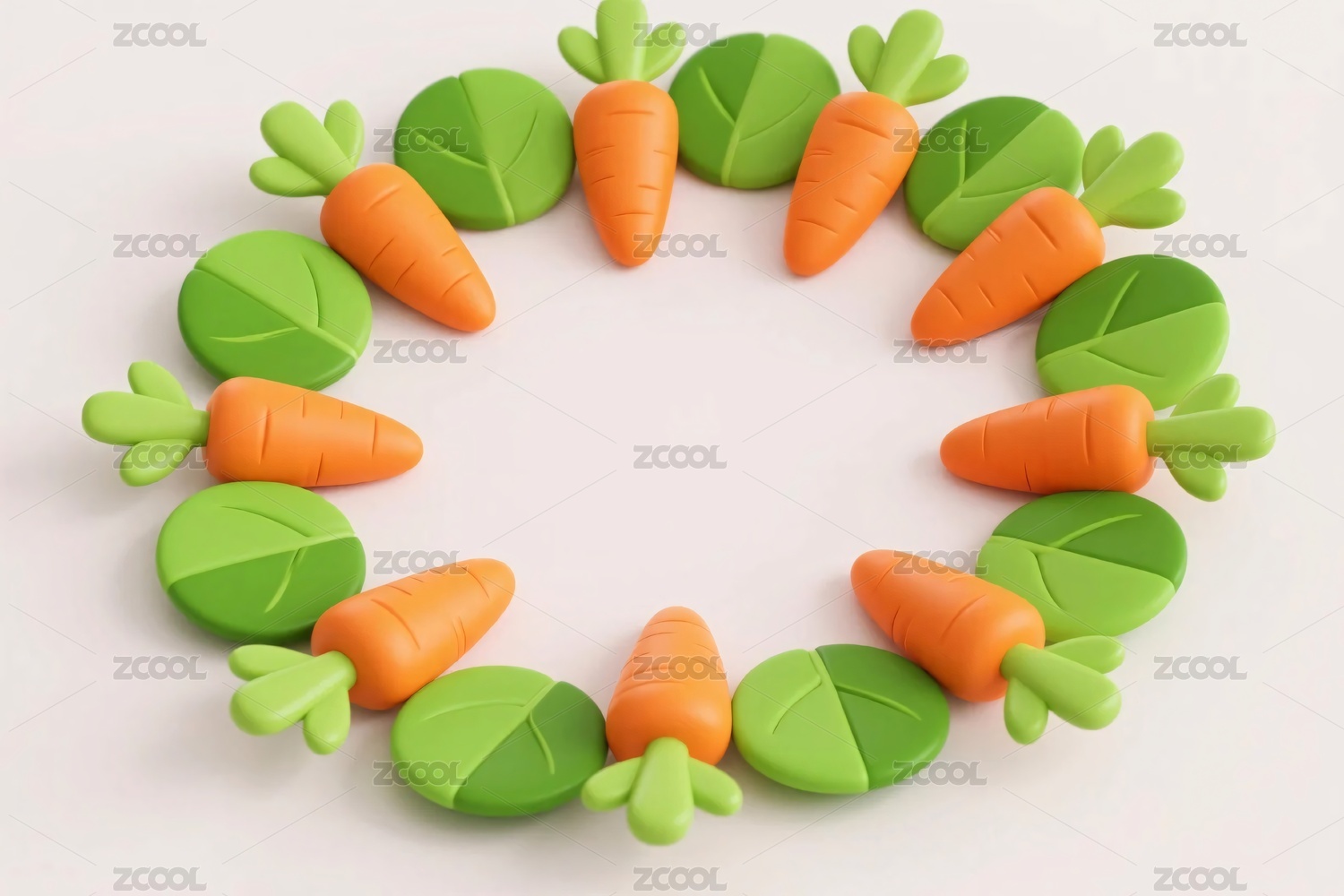 白色盘子里模切卡通形状的胡萝卜和黄瓜