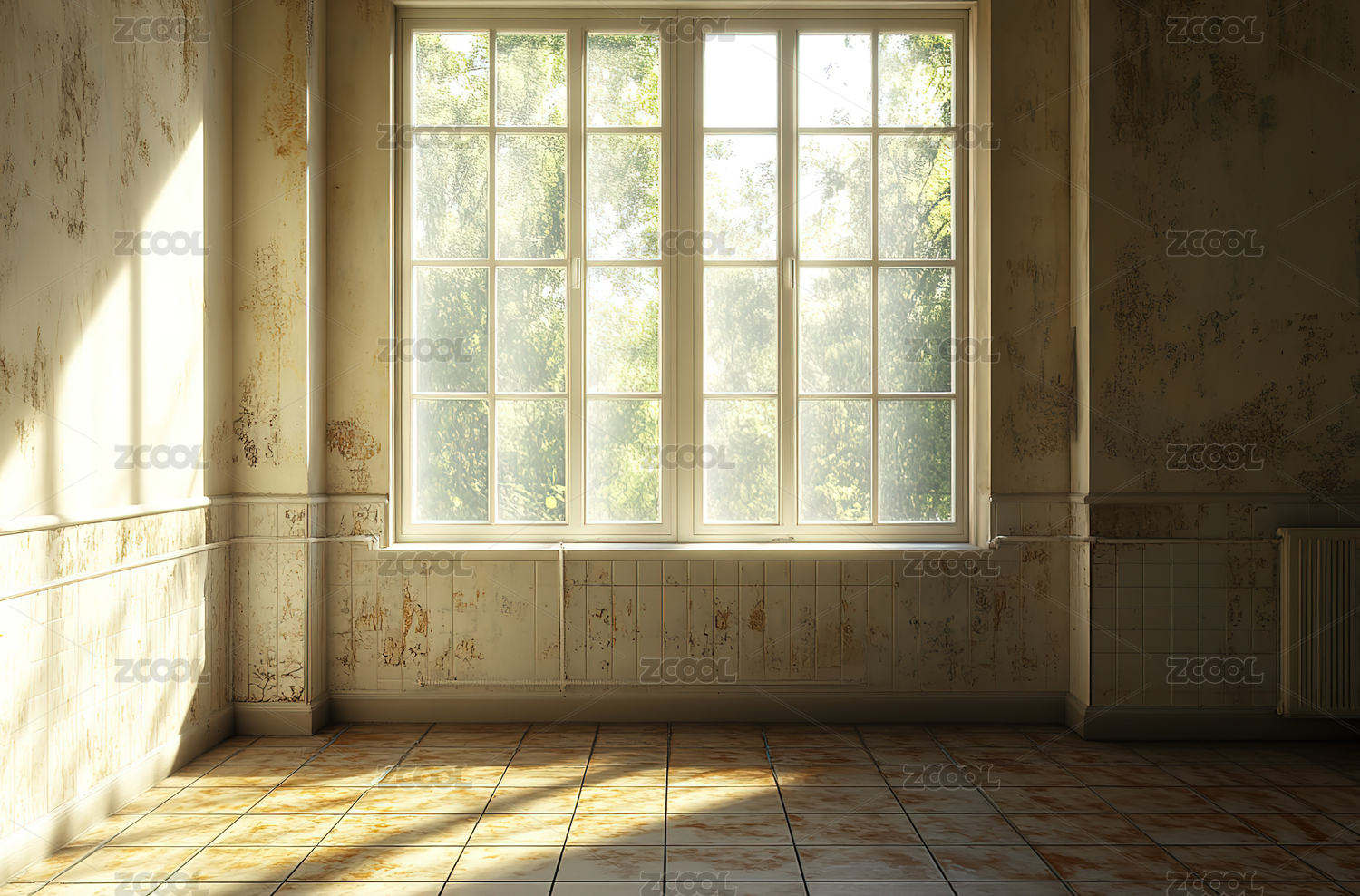 废弃,工厂,光影,窗户,木板,地面,墙壁,阳光,尘埃,落地窗