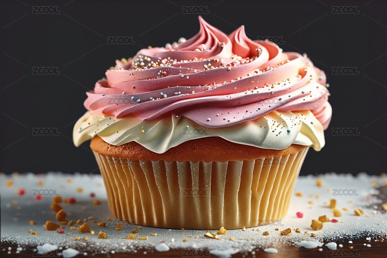 粉色,奶油,蛋糕,甜点,纸杯,撒糖粒,食物,美食,可爱,甜蜜