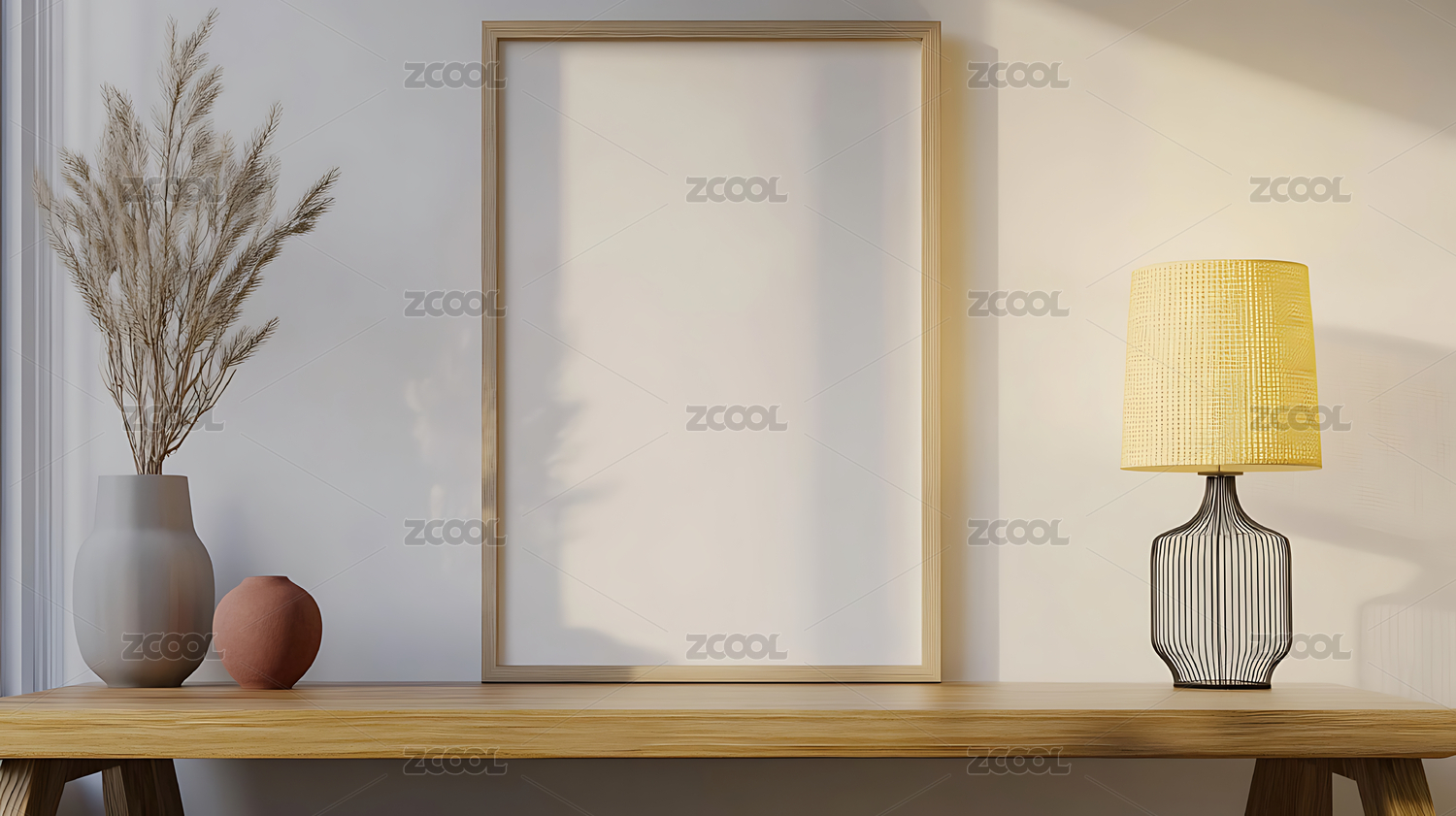 房间桌子植物空白框架装饰画模板概念背景