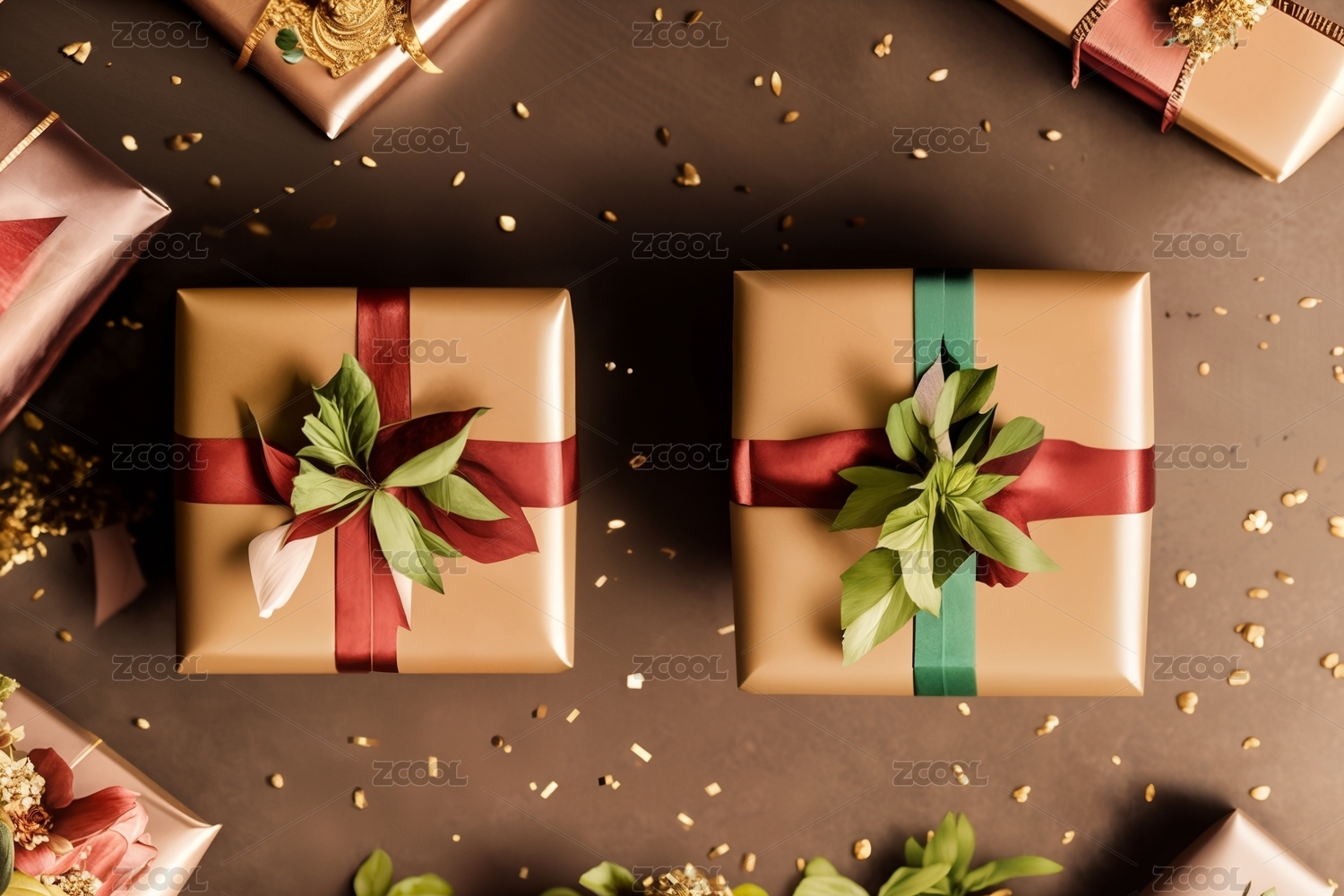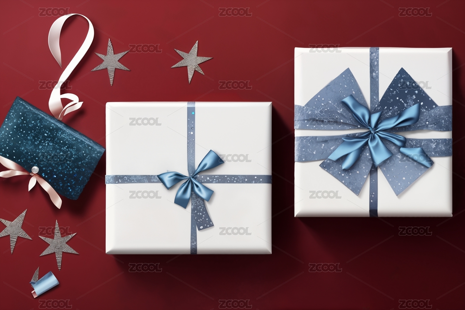 圣诞,礼物,包装,盒子,蝴蝶结,丝带,星星,装饰,桌面,节日