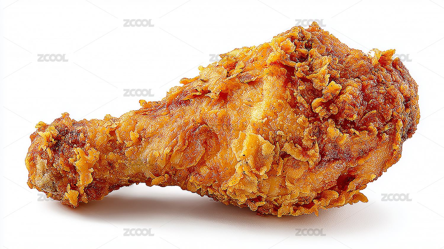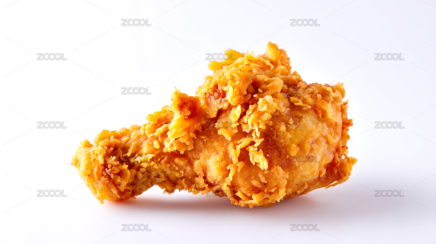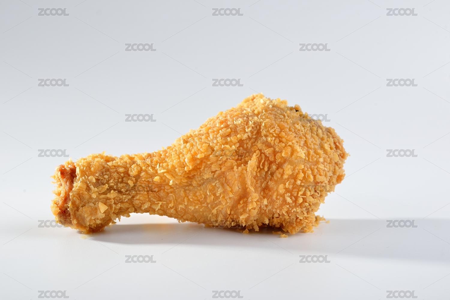 纯白背景下金黄色的炸鸡腿