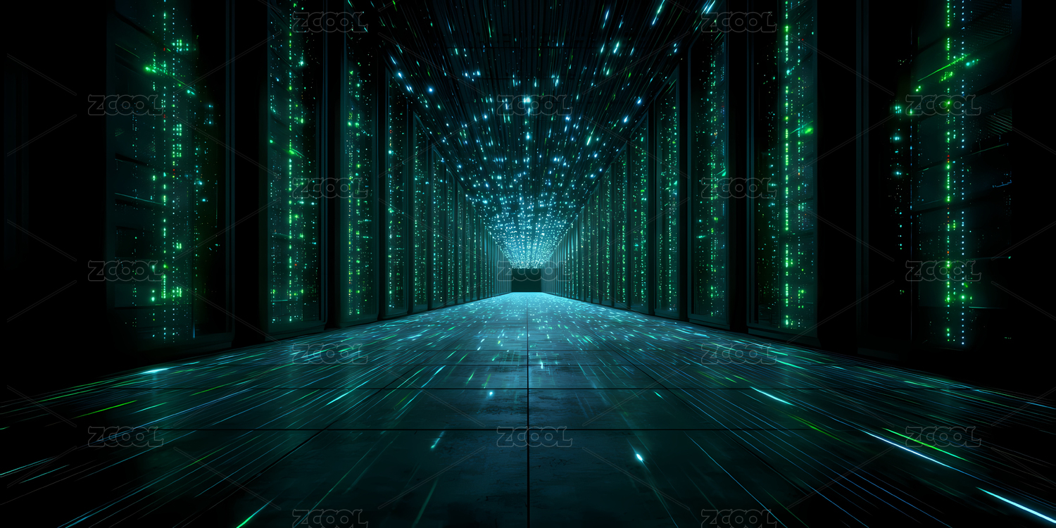 绿色光束交织的未来科技走廊