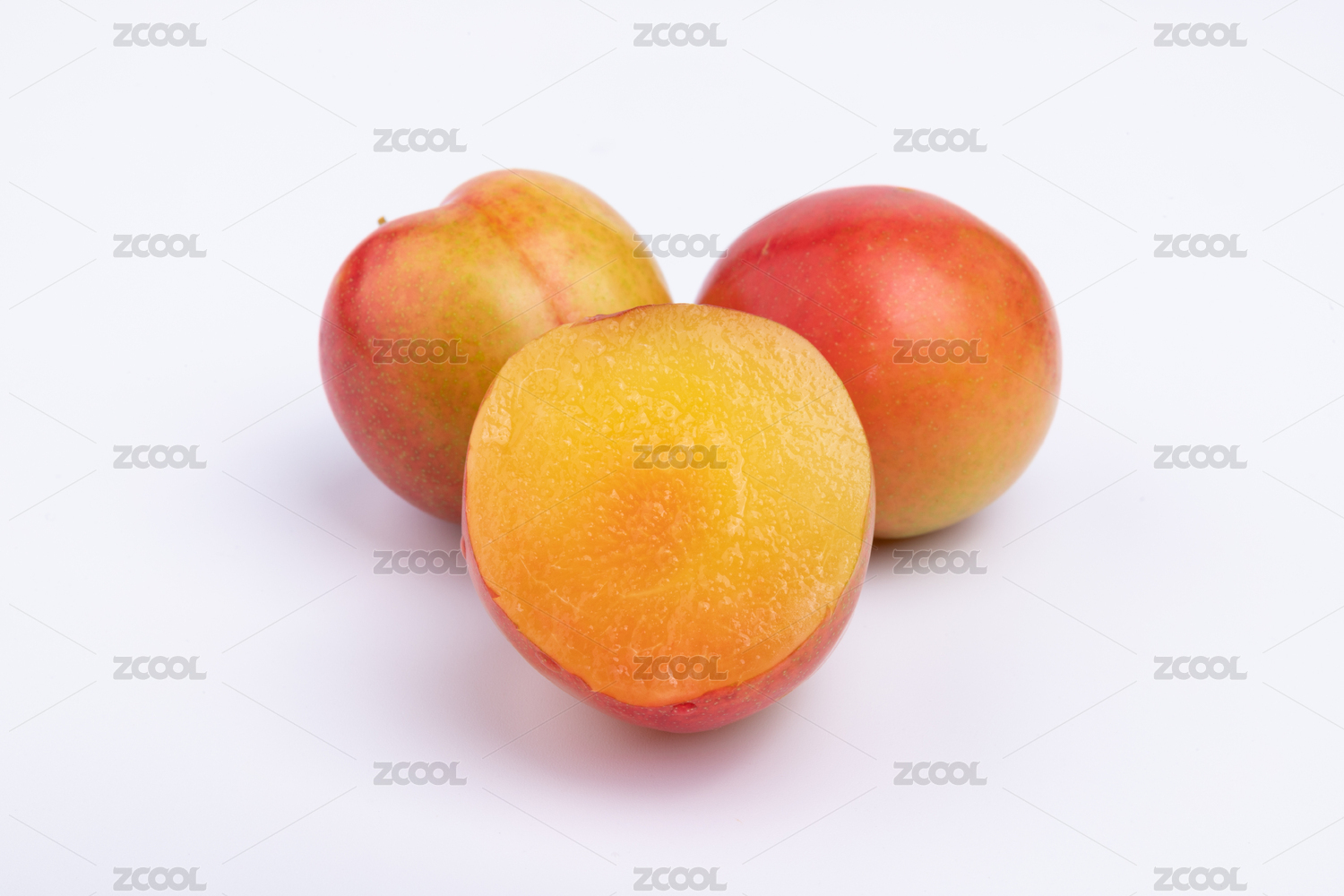 白底上的新鲜红杏