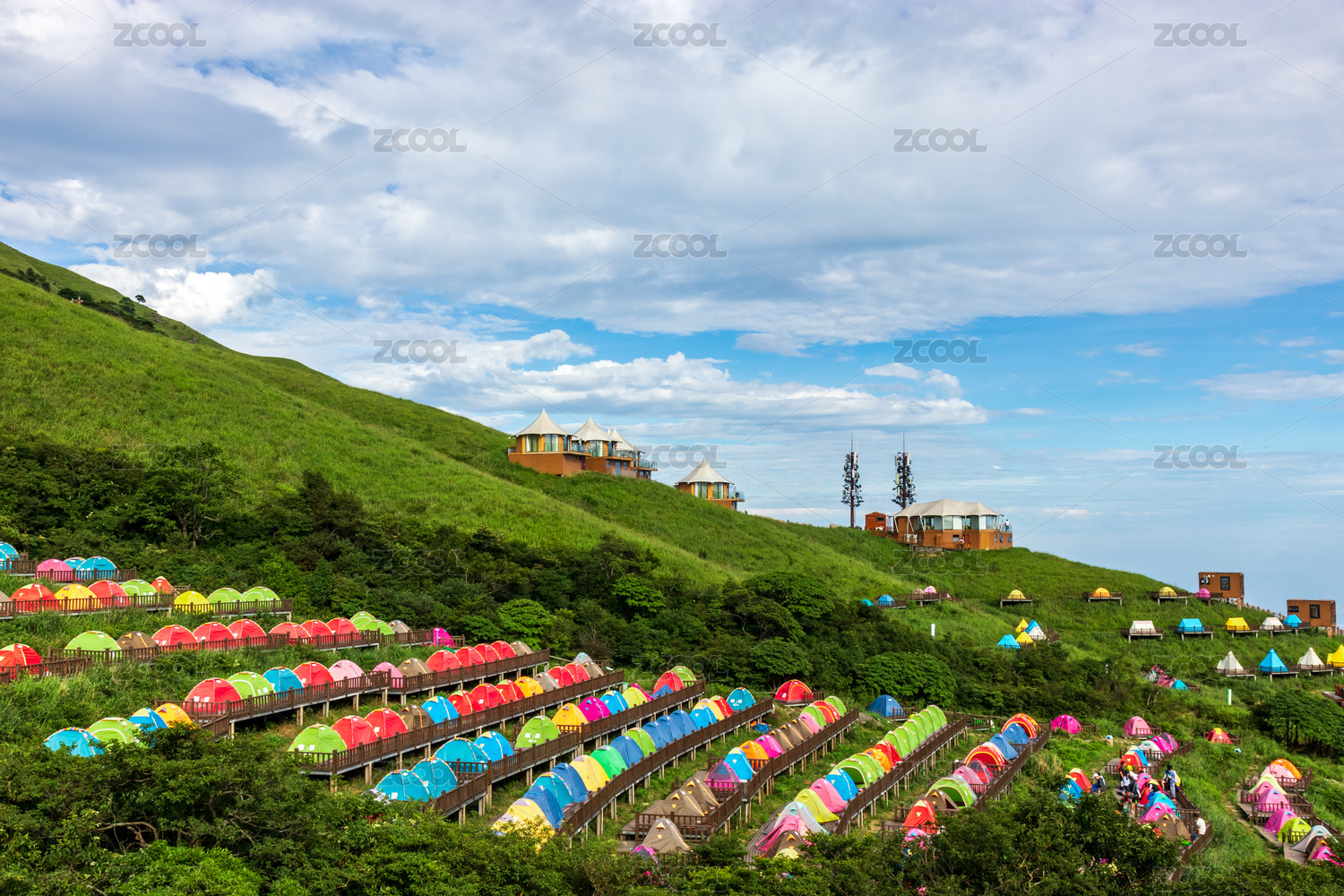 江西武功山高山草原,帐篷露营地