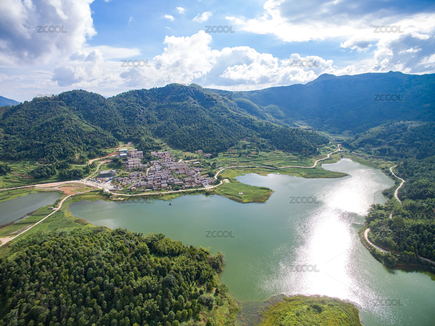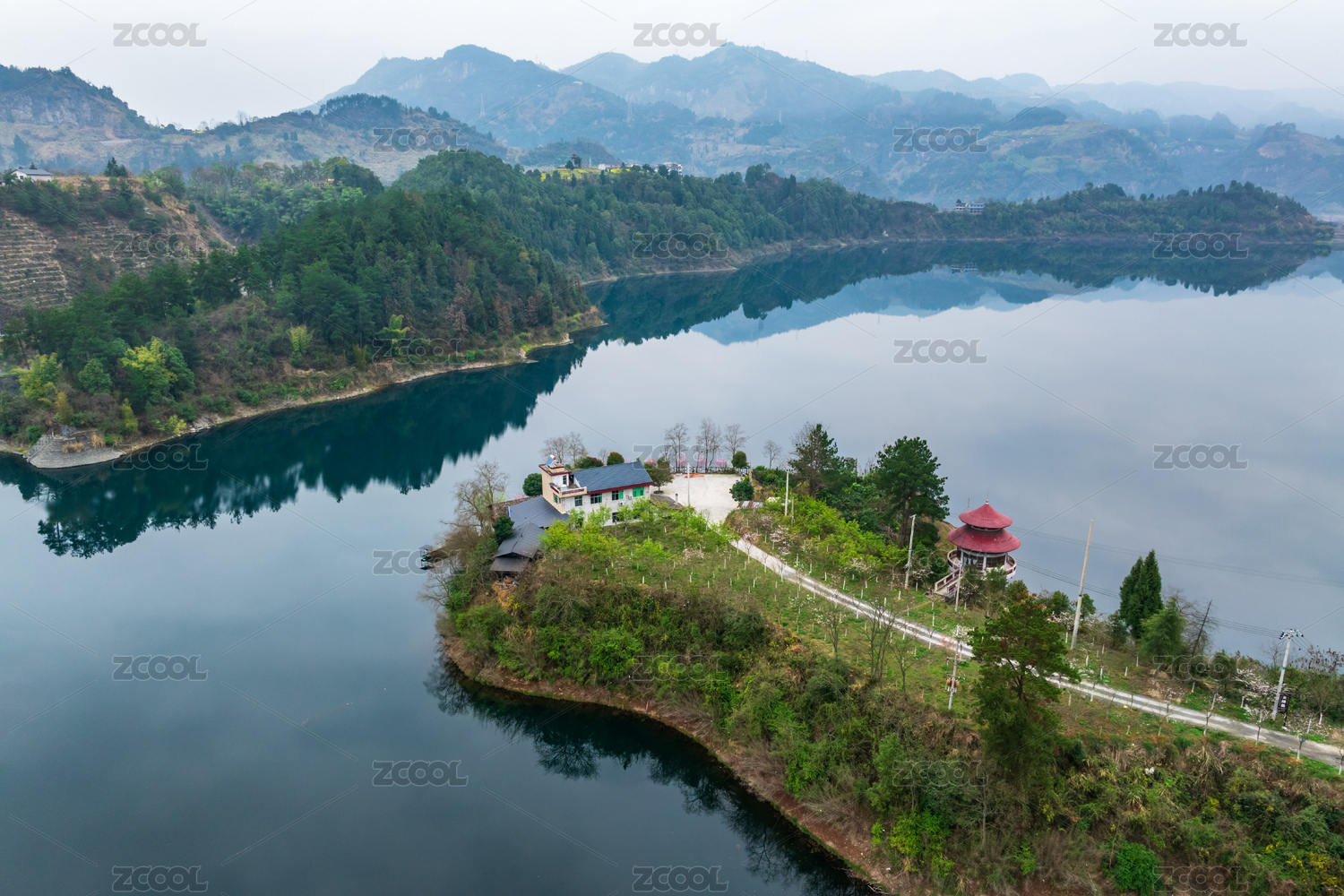 航拍湖北黄冈英山县石头咀镇张咀水库