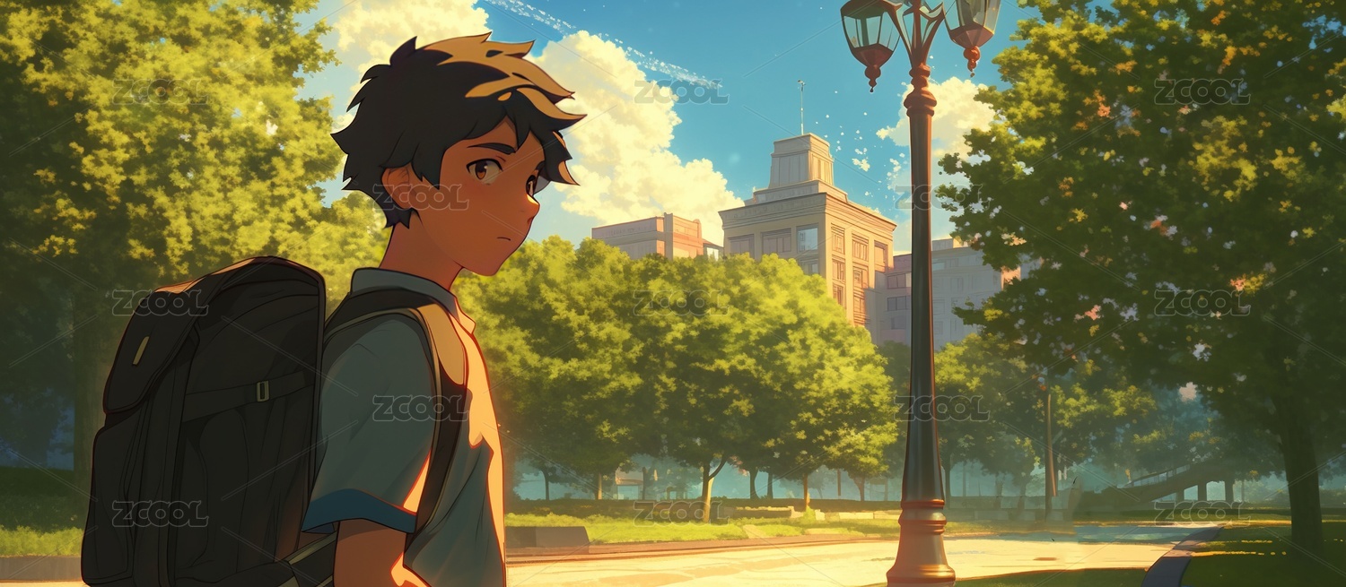 望向远处的男孩新海诚动漫风插画
